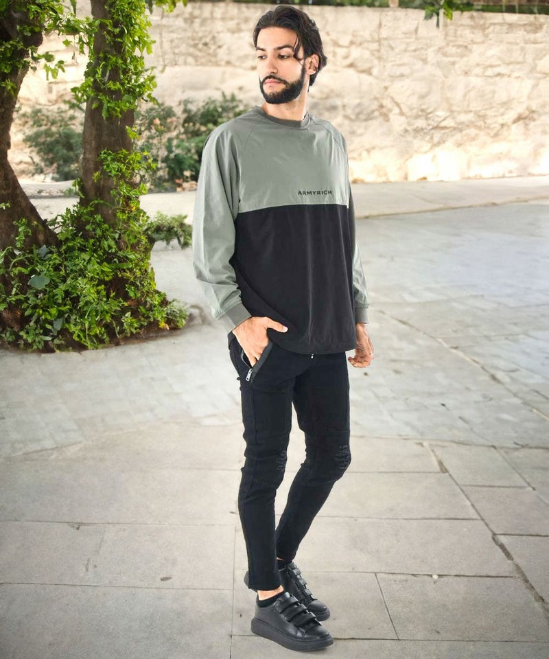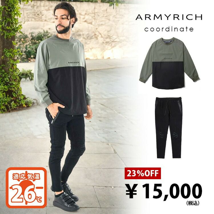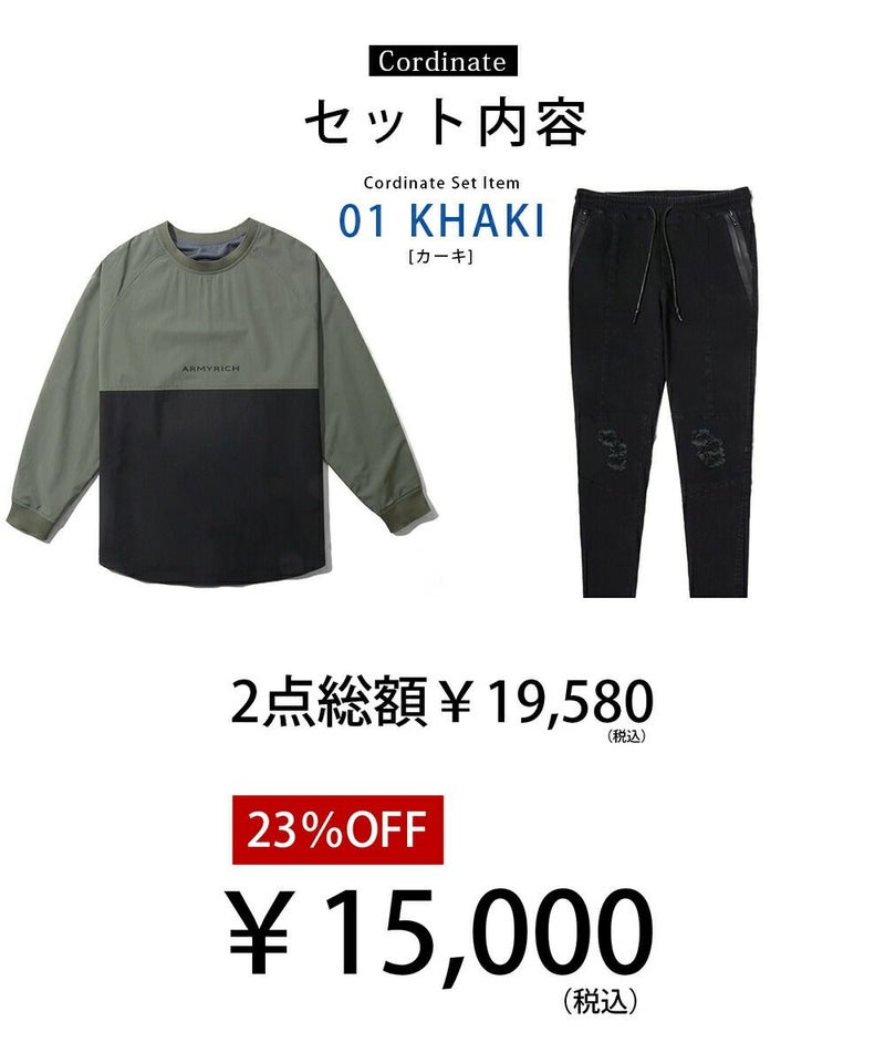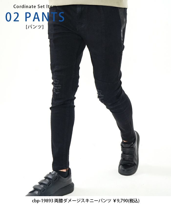 コーディネートセット(バイカラーナイロンロングスリーブ/両膝ダメージスキニーパンツ)