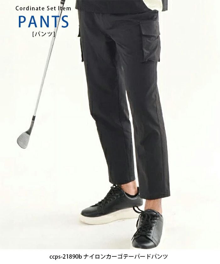 コーディネートセット(モックネックBIGプリントTシャツ×ナイロンカーゴテーパードパンツ)