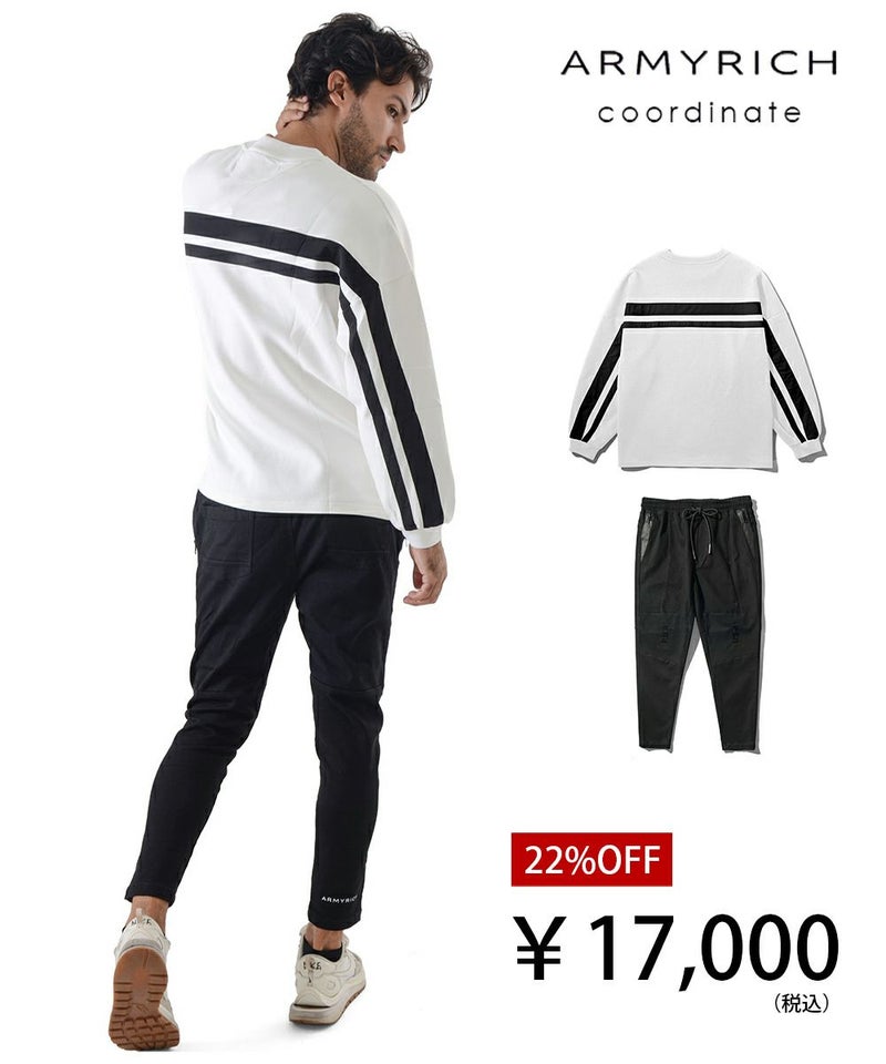コーディネートセット(ラインデザイントレーナー×両膝ダメージスキニーパンツ)