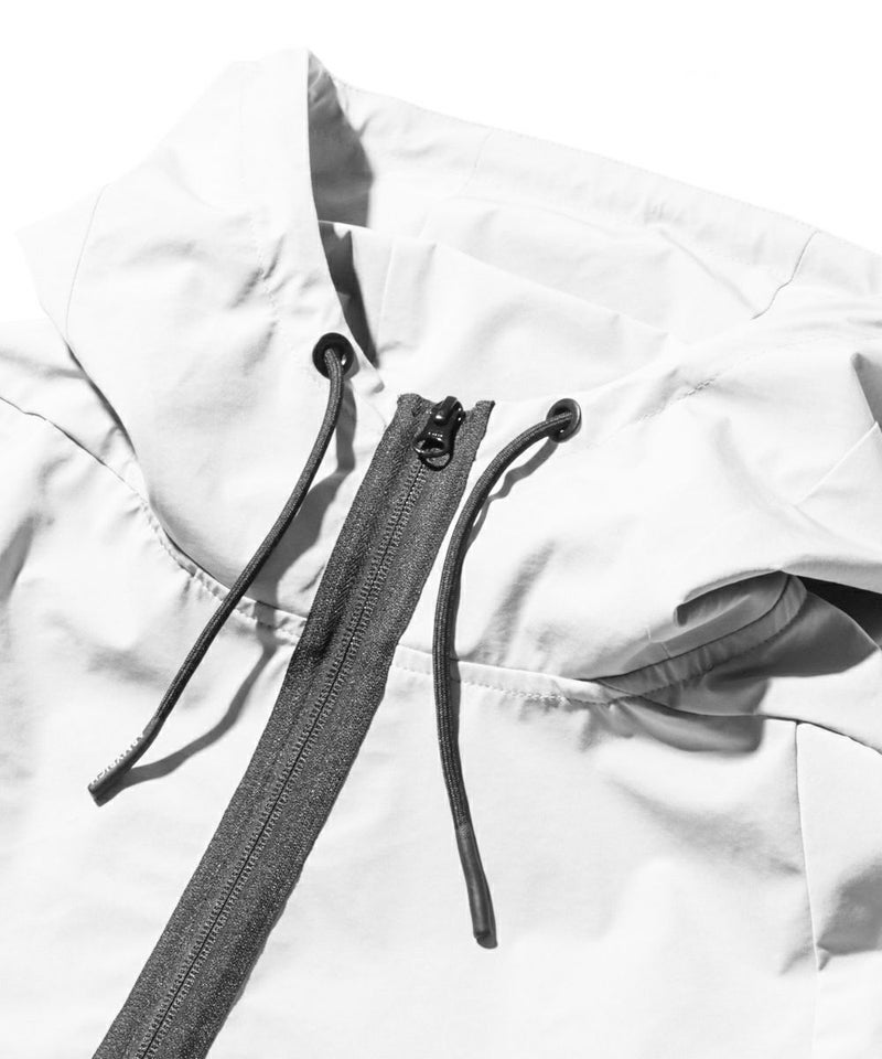 撥水加工が施された薄手のナイロン素材は、軽やかで通気性に優れ、暑い日でも快適な着心地をキープ。