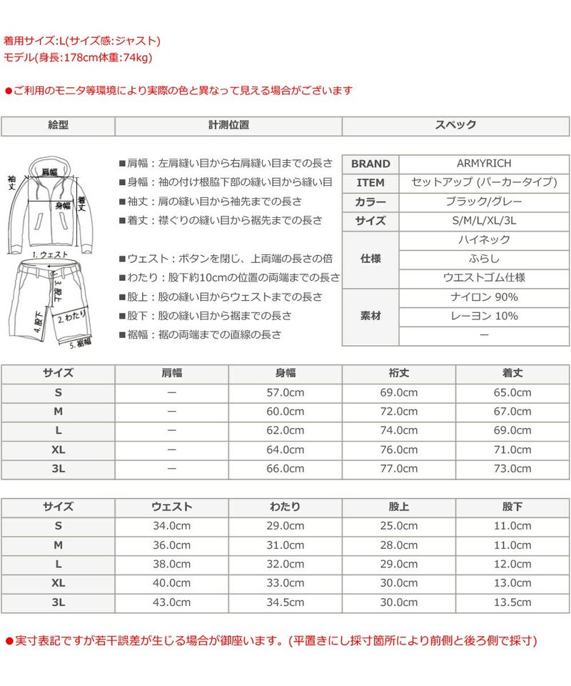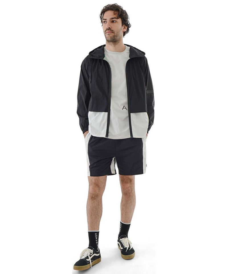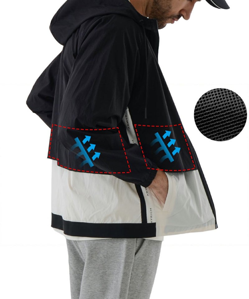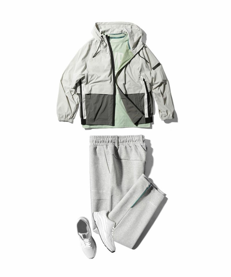 ARMYRICHの「撥水ナイロンフルジップパーカーセットアップ」は、急な天候変化にも対応できる機能性と洗練されたデザインを融合させた万能ウェア。