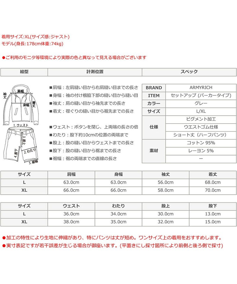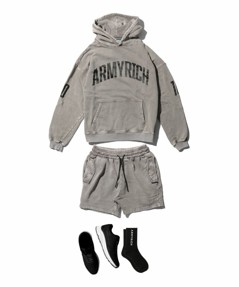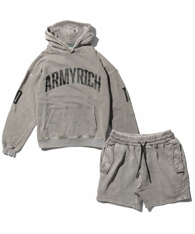 ARMYRICHの「ピグメント加工オーバーサイズパーカーセットアップ」は、ヴィンテージライクな風合いが魅力のカジュアルセットアップ。