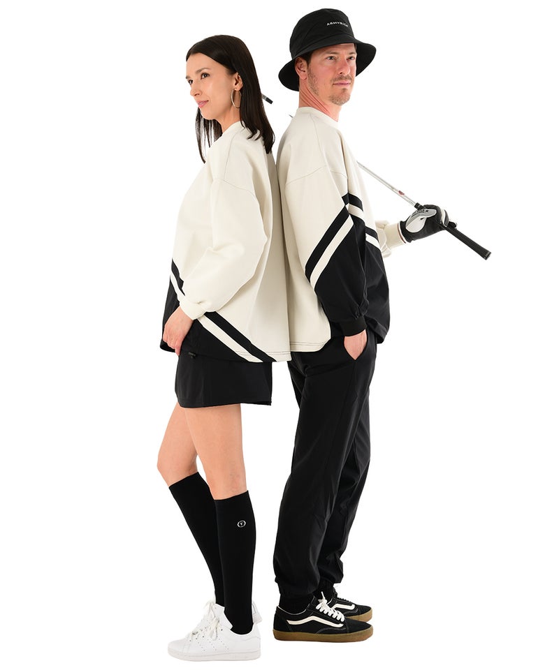 適度なハリと柔らかさを兼ね備えたボンディング素材は着心地も快適で、ゴルフなどのスポーツシーンからデイリーコーデまで幅広く活躍。 ストリート感と機能性を兼ね備えた、ARMYRICHらしいセットアップです。