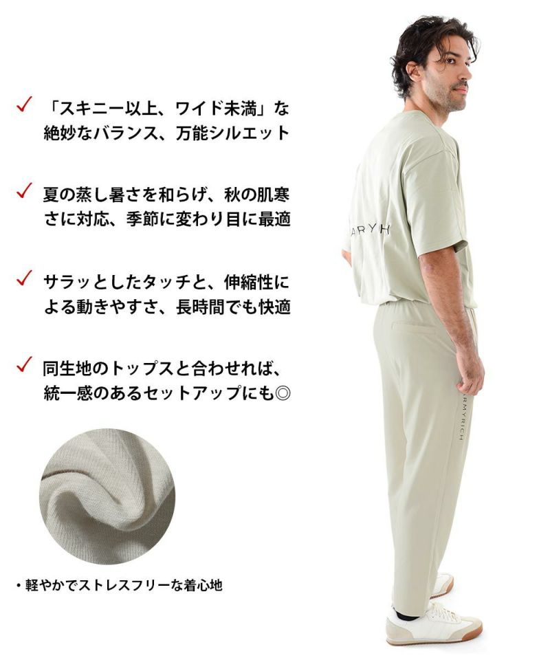 同素材のトップスと合わせれば、統一感のあるセットアップとしても活躍。タウンユースはもちろん、ゴルフやジムなどのアクティブシーンにも最適です。 シンプルながらも計算されたシルエットで、美しくスタイルアップを叶える1本です。
