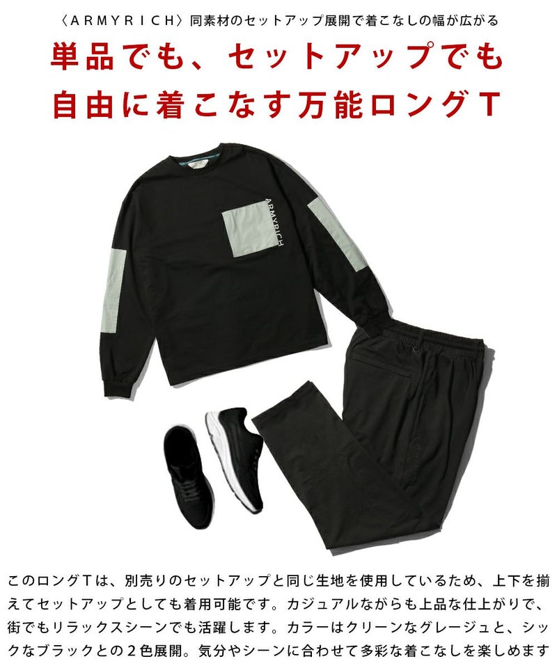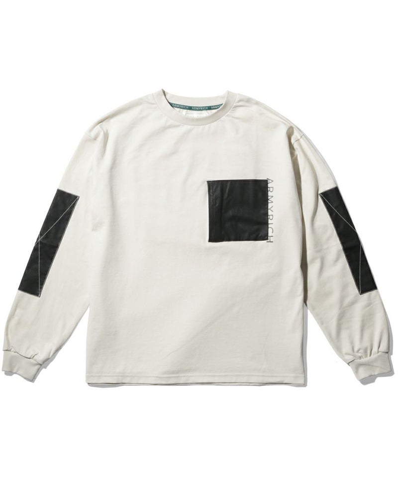 立体的なPUレザーポケットが目を惹く、ARMYRICHのレザーポケットロングTシャツ。 程よくゆったりとしたオーバーサイズシルエットで、体型を拾わずリラックスした着心地を叶えます。