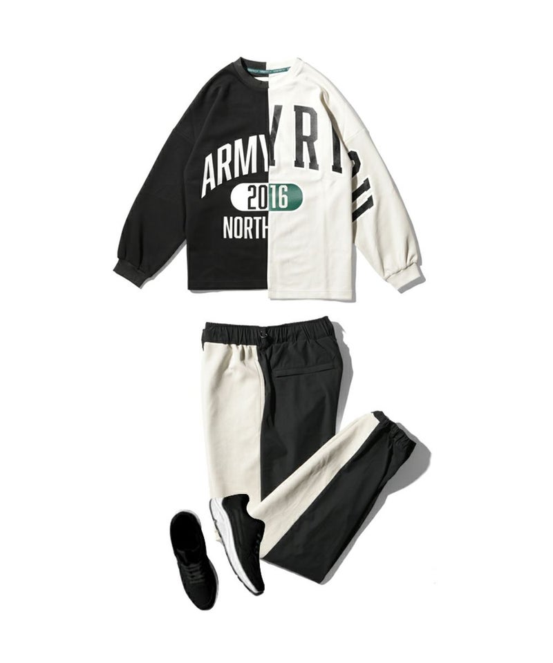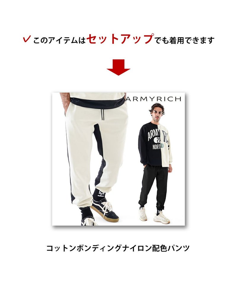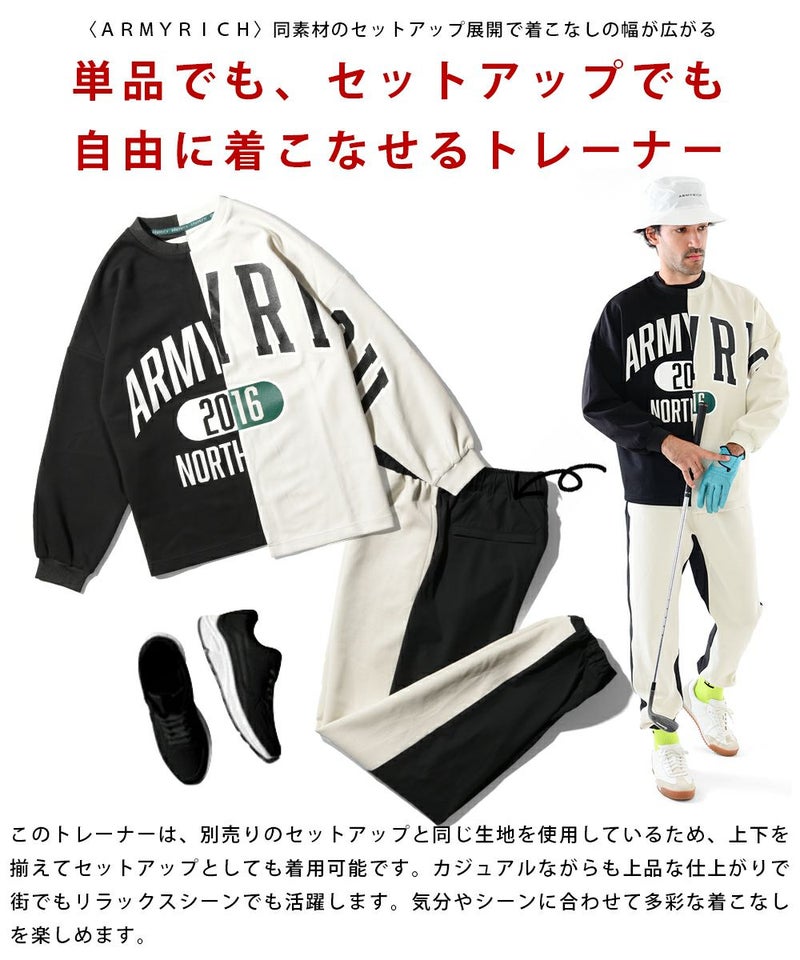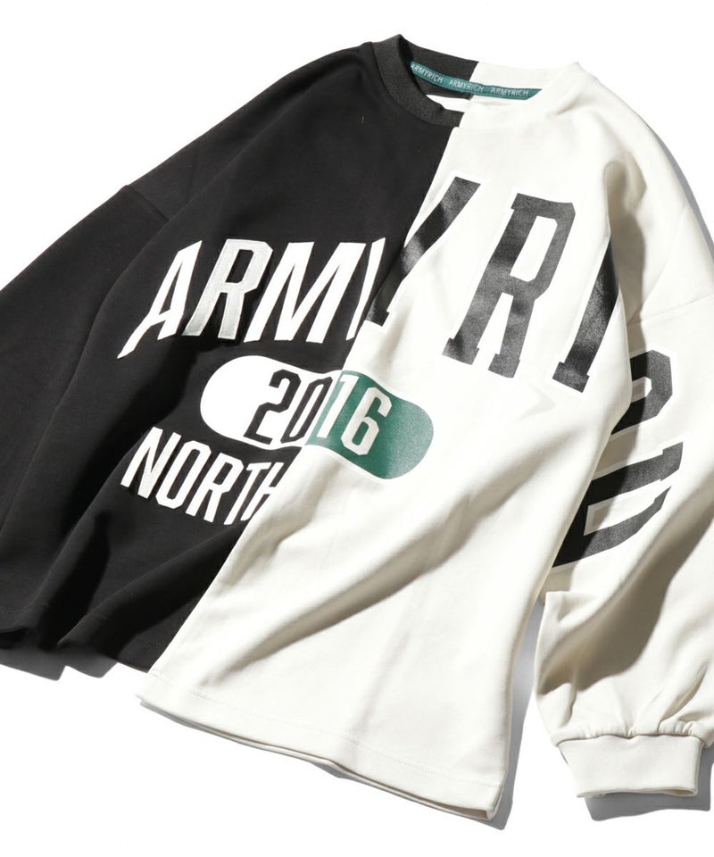 ARMYRICHから登場した「リメイク風トレーナー」は、古着をリメイクしたような大胆なドッキングデザインが魅力のスウェットトップスです。 定番のコットンボンディング生地を使用し、柔らかさとハリ感を兼ね備えた快適な着心地を実現。毎日の着用でも型崩れしにくく、長く愛用していただけます。