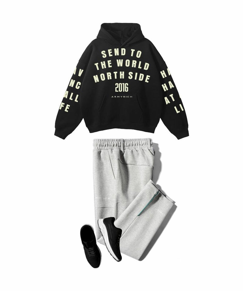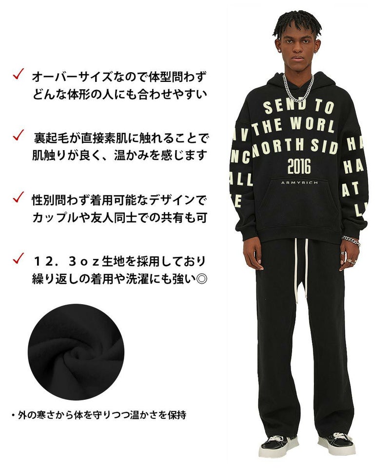 【札幌から発送】フロッキーアーチプリント裏起毛プルパーカー