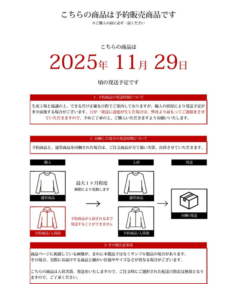 予約商品と通常の商品を同じカゴでご購入された場合、全て商品が揃ってからの発送になります。 (必須)