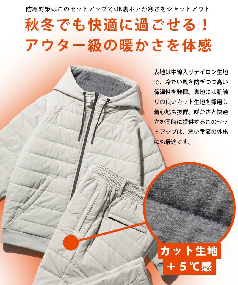 【札幌から発送】中綿撥水ナイロンキルティングフルジップパーカーセットアップ