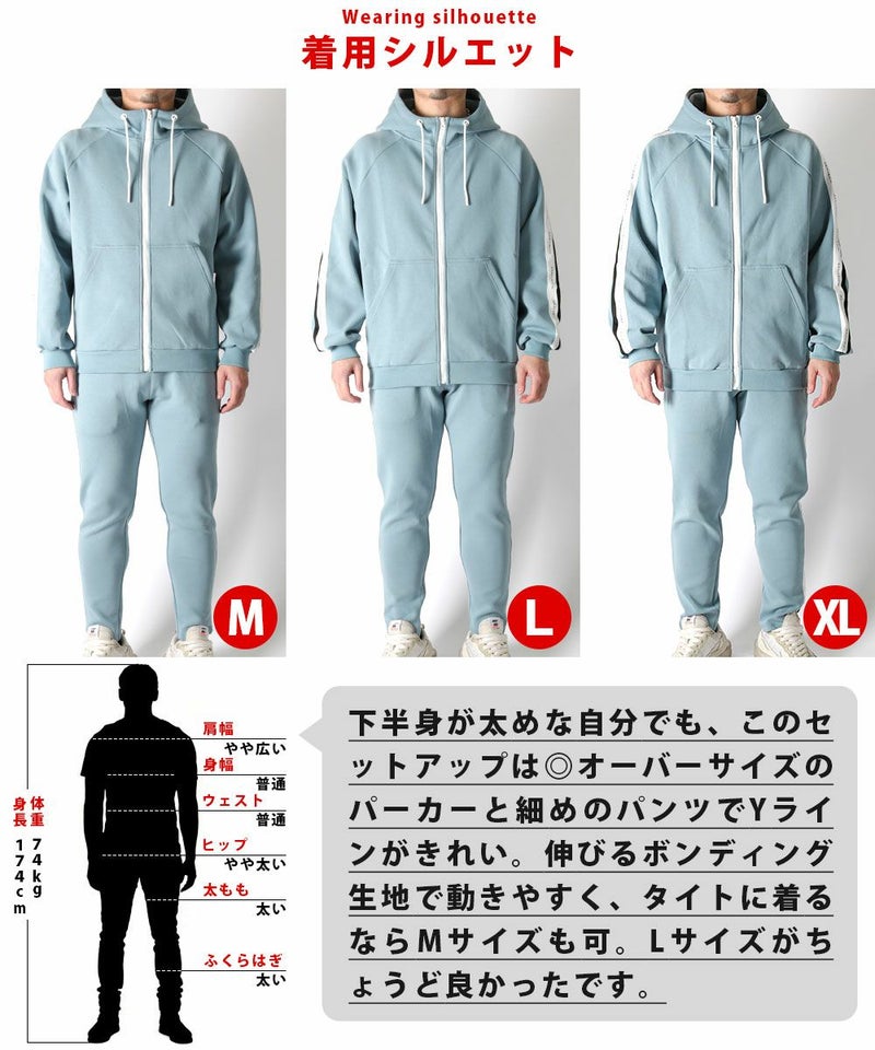 ラインテープボンディングフルジップパーカーセットアップ