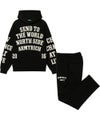 裏起毛メッセージプリントパーカーセットアップ