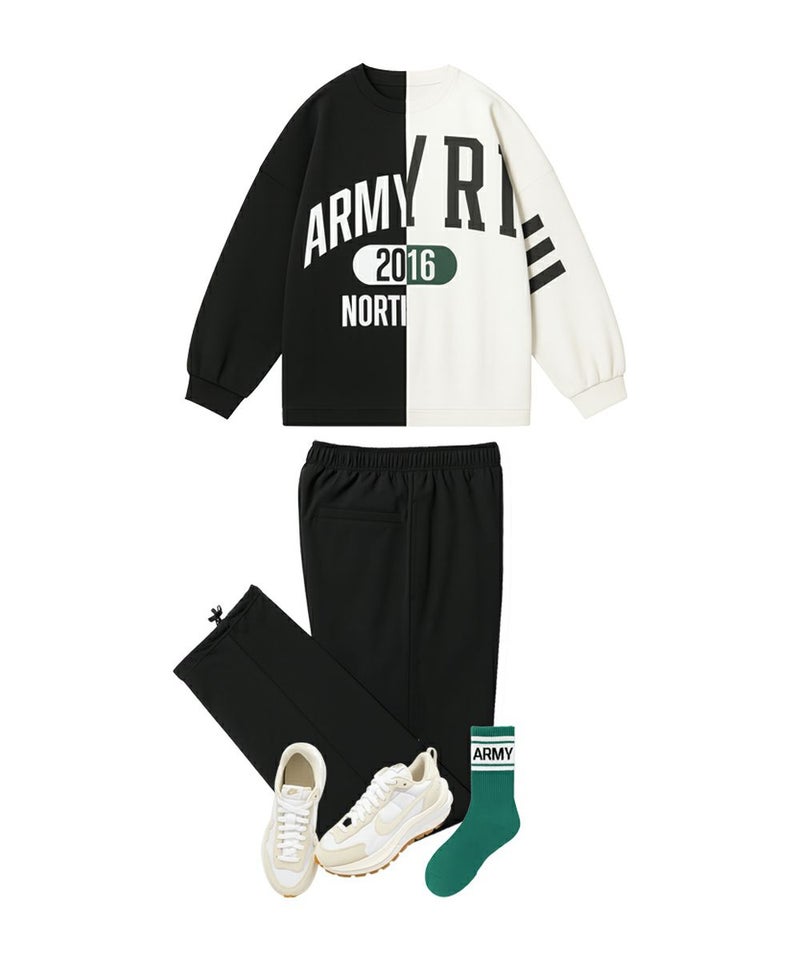 トップスはオーバーサイズでリラックス感のあるシルエット。 パンツはやや太めのストレートラインで、脚のラインを拾わずすっきりと見える設計です。 上下セットでの着用はもちろん、単品でも幅広くコーディネート可能。