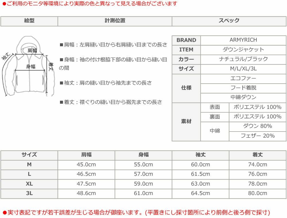他の画像を見る ARMYRICH/22AW 【札幌から発送】ファー付ダウンジャケット ARMYRICH 定価 ¥ 23,958 のところ ¥ 14,278 税込 在庫切れ 詳細を見る お気に入りに登録する