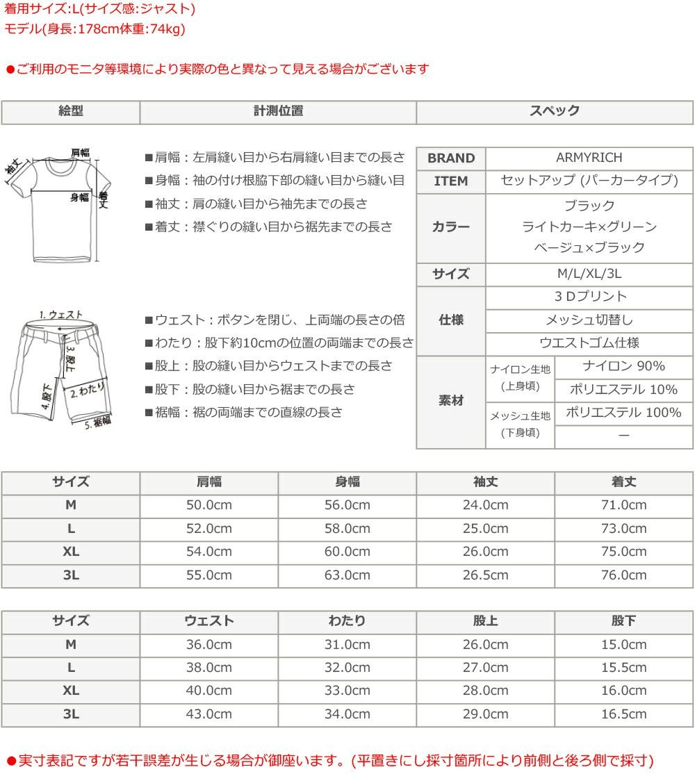 他の画像を見る ARMYRICH/23SS コーディネートセット(レーヨン素材ドライTシャツ/メッシュハーフパンツ) ARMYRICH 定価 ¥ 11,180 のところ ¥ 8,000 税込 在庫切れ 詳細を見る お気に入りに登録する