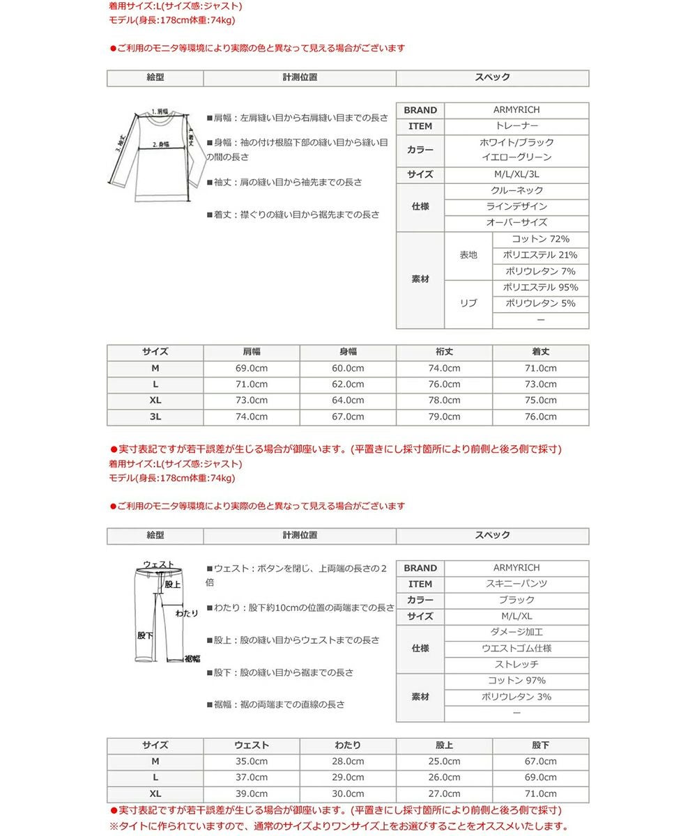 他の画像を見る ARMYRICH/24AW コーディネートセット(ラインデザイントレーナー×両膝ダメージスキニーパンツ) ARMYRICH 定価 ¥ 21,560 のところ ¥ 17,000 税込 在庫切れ 詳細を見る お気に入りに登録する