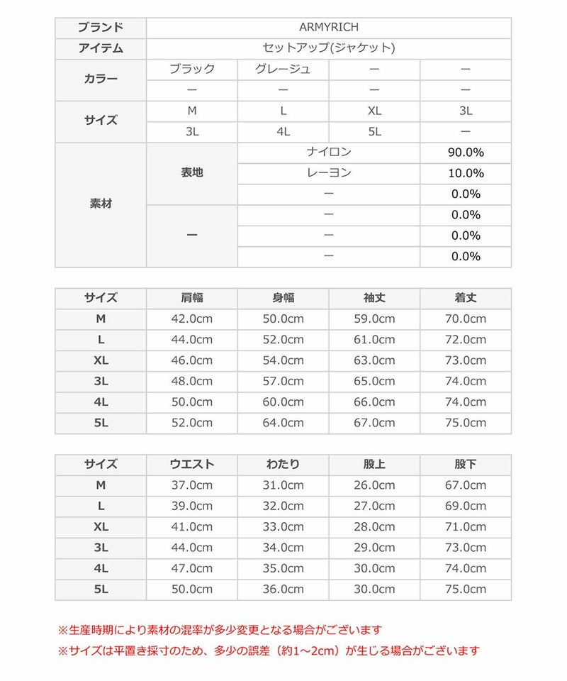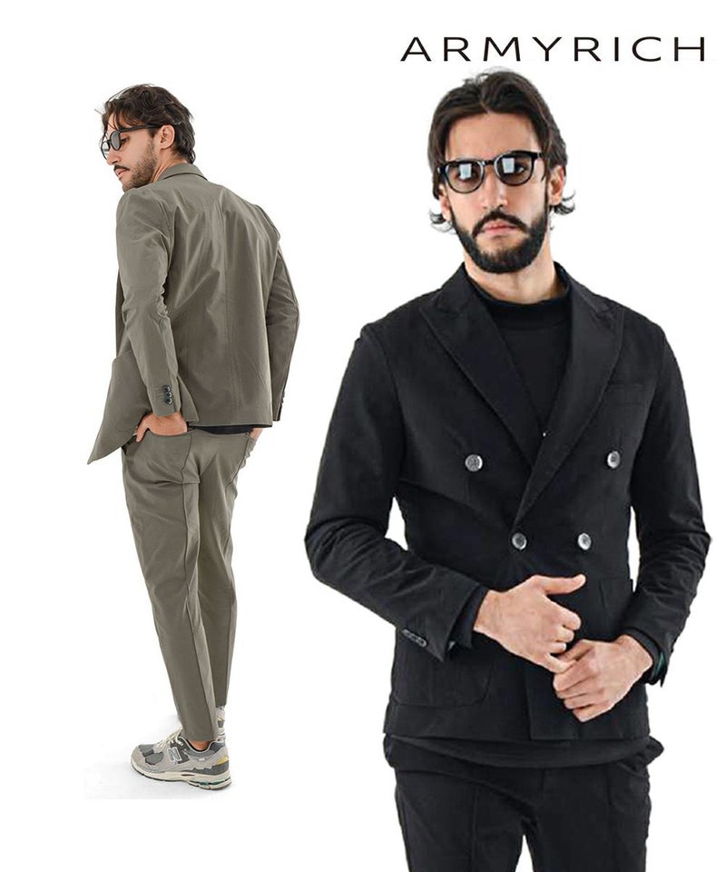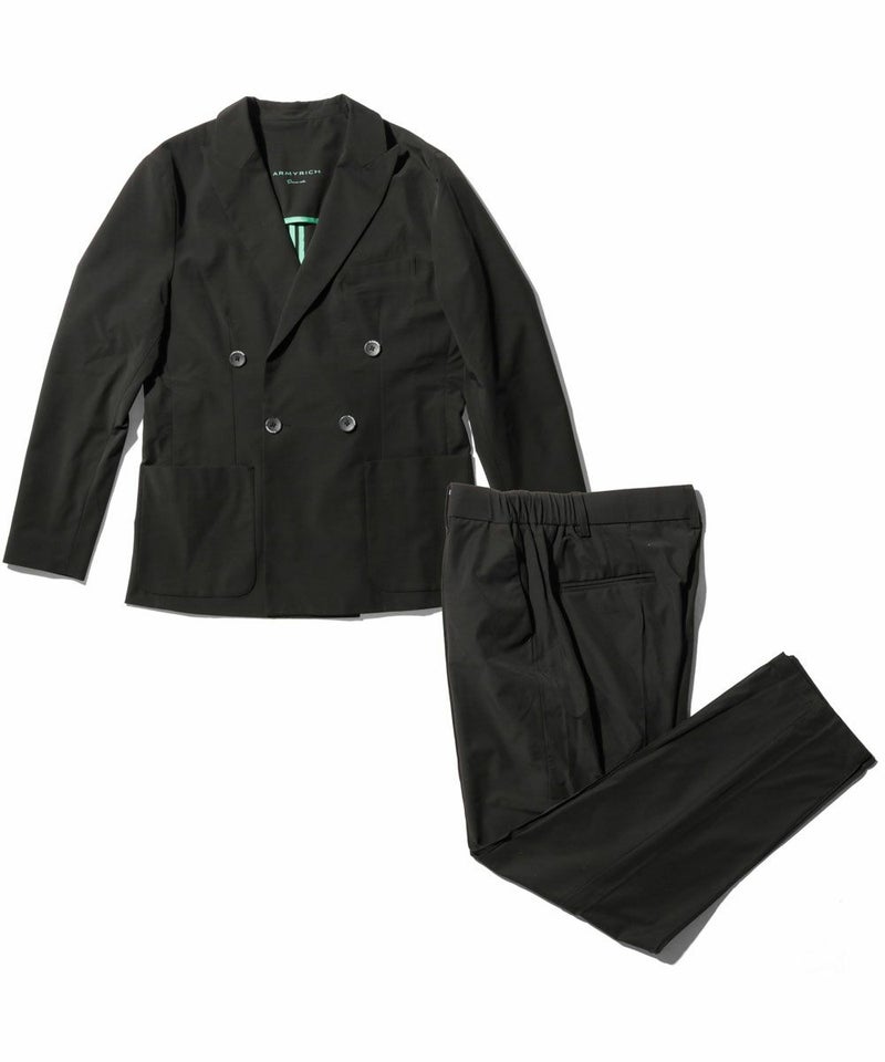 きちんと感と快適さを両立した、ARMYRICHの新作セットアップ。 軽量で通気性に優れたナイロン素材を使用し、伸縮性も高くストレスフリーな着心地を実現しました。ダブルブレスト特有のボタン配列が、重厚感とエレガンスを演出。