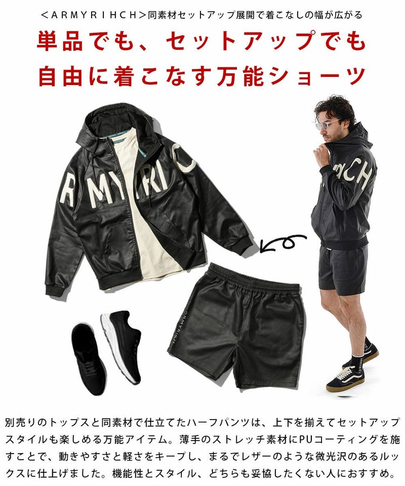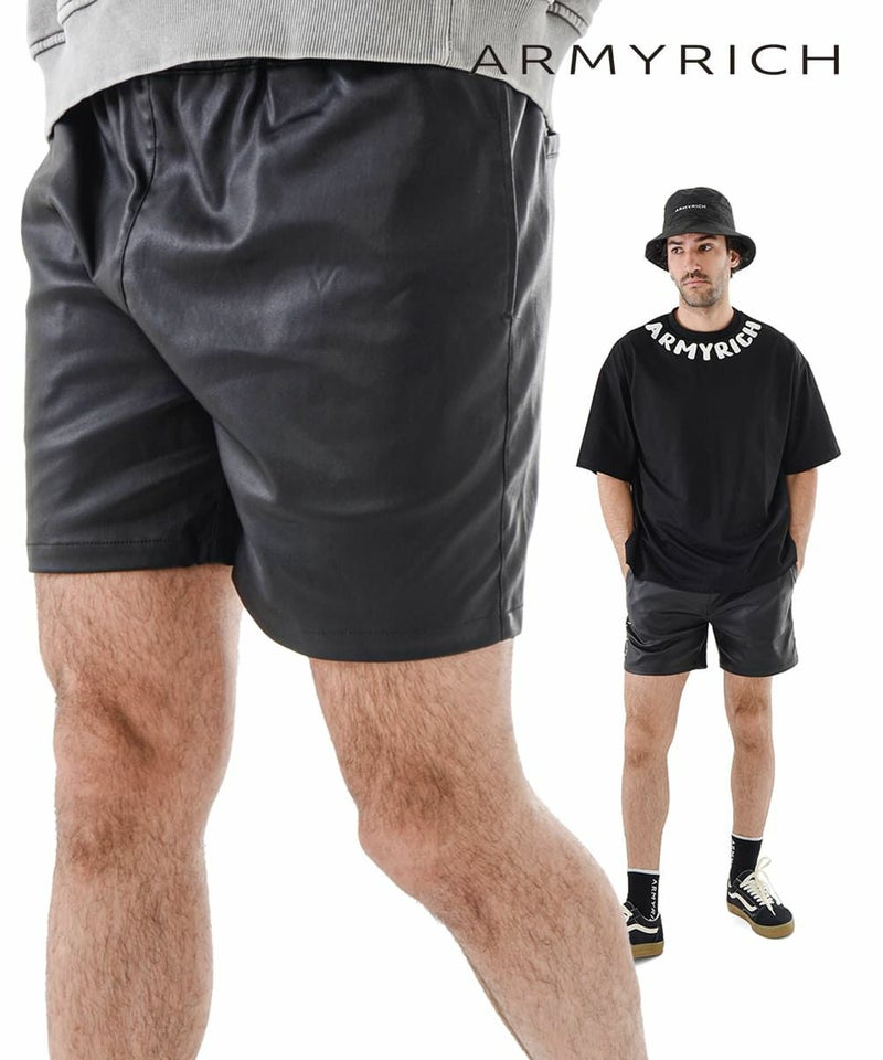 ARMYRICHの「PUレザーコーティングショーツ」は、重厚なルックスと軽やかな着心地を両立させた大人のショートパンツ。