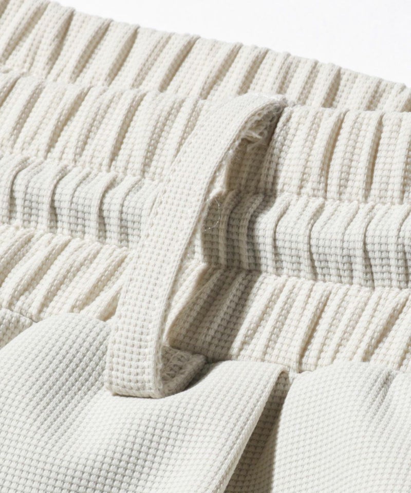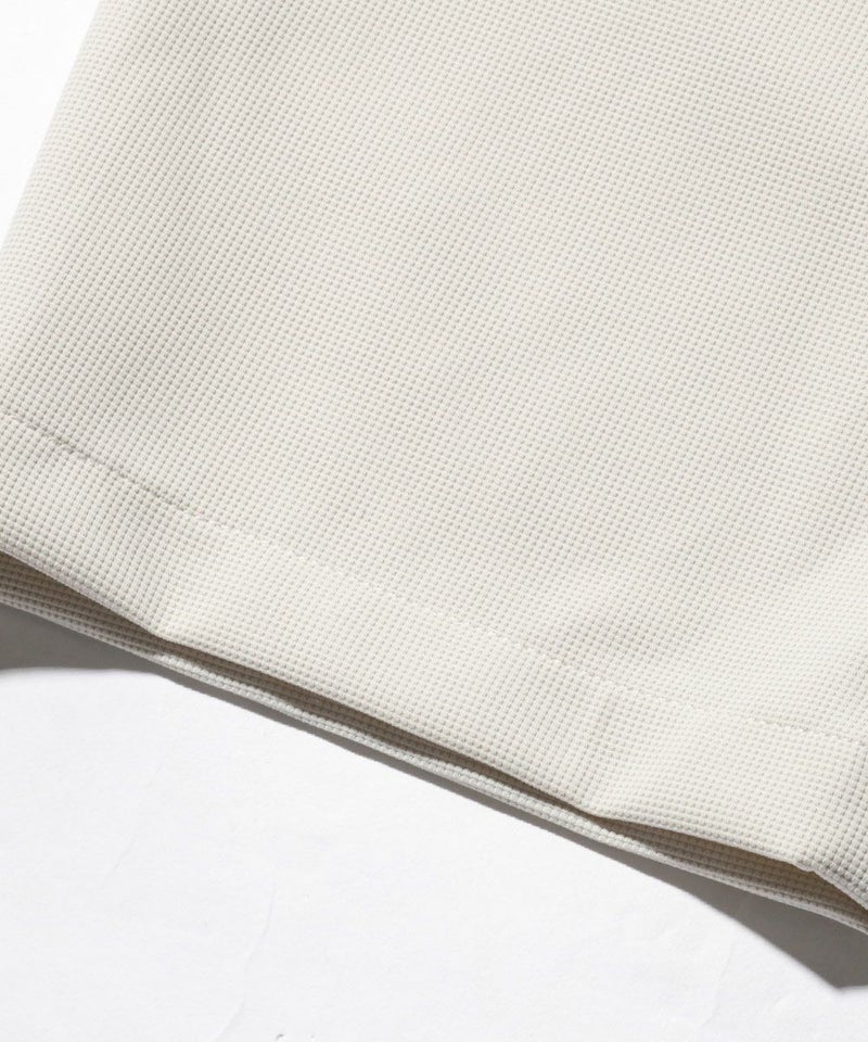 ウエストにはベルトループが備わっているため、ゴルフや外出時にも対応しやすく、着こなしの幅が広がります。 素材にはとろみ感のあるワッフル生地を使用。サラッとした肌触りでベタつかず、汗ばむ季節も快適な穿き心地をキープします。