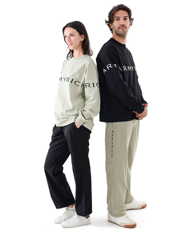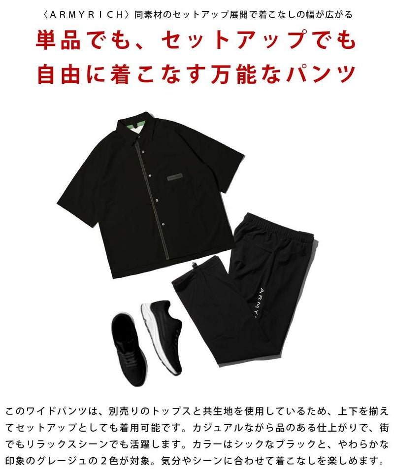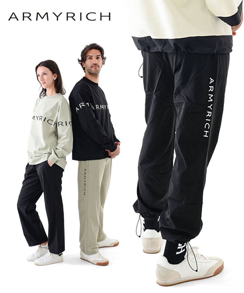 ARMYRICHの「ワイドストレートパンツ」は、体型カバーとスタイルアップを同時に叶える万能パンツ。 ウエストと裾のドロストコードでシルエットのアレンジが可能で、コーディネートに合わせて印象を自由に変えられます。