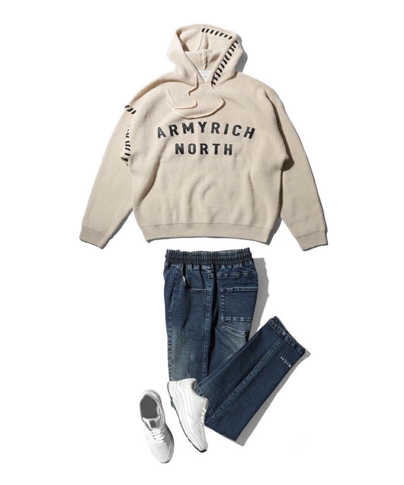 ARMYRICH(アーミーリッチ)から登場した「ハンドステッチニットパーカー」。 厚手のウール混素材を使用し、秋冬の冷たい空気をやさしく遮断。包み込まれるような暖かさと快適な着心地を実現します。