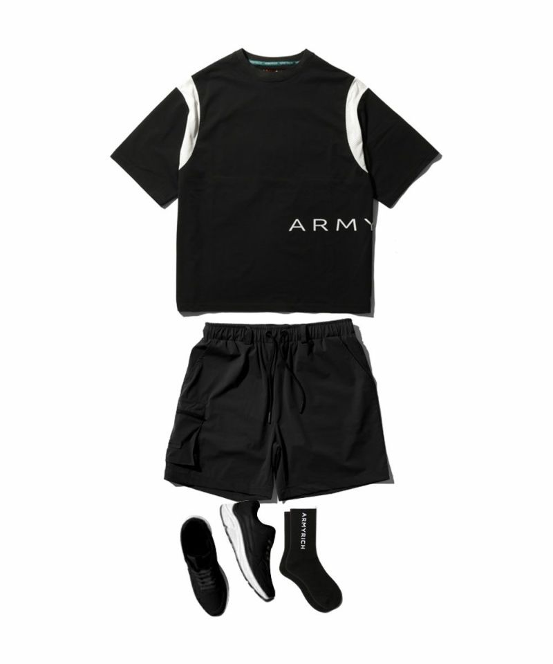 ARMYRICHの「接触冷感スパンデックスメッシュ配色Tシャツ」は、スタイリッシュな配色切り替えと高機能素材を融合させた万能Tシャツ。