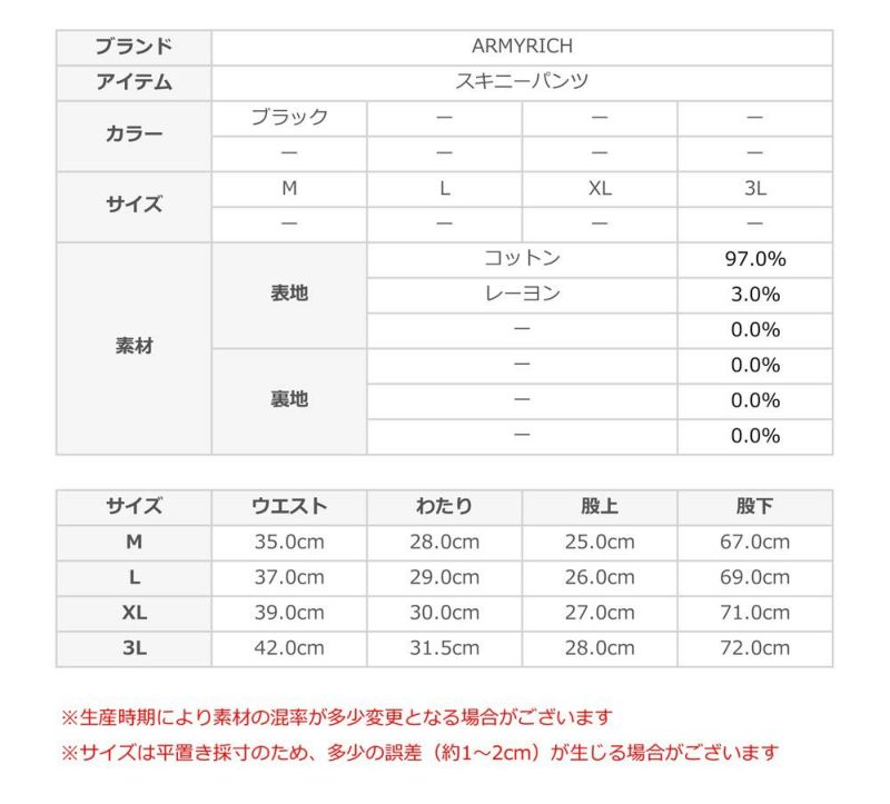 ARMYRICHの「両膝ダメージスキニーパンツ」は、脚のラインを美しく見せるスリムシルエットと、快適なストレッチ性を兼ね備えた一本。黒パンの見た目ながらスウェットのような柔らかさで、長時間の着用でもストレスフリー。