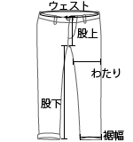 | ウエスト | 72~86 | 76~80 | 80~84 | 84~88 | 88~92 | 92~96 | 96~100 |