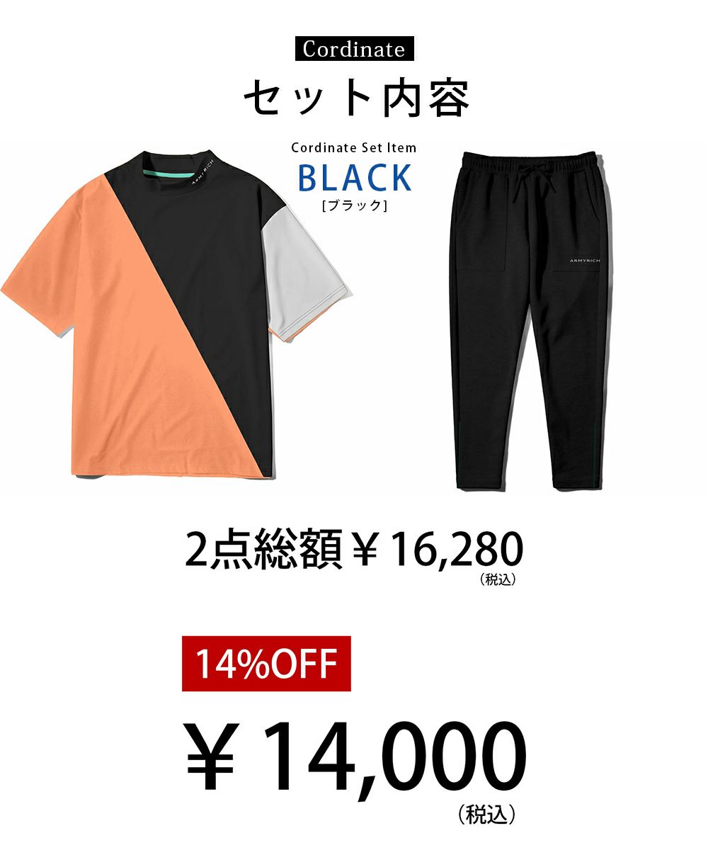 コーディネートセット(配色半袖モックネック×スウェットパンツ)