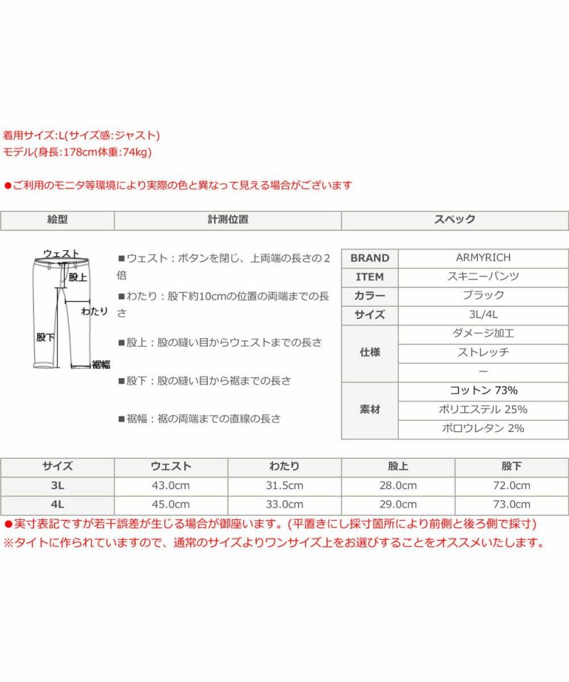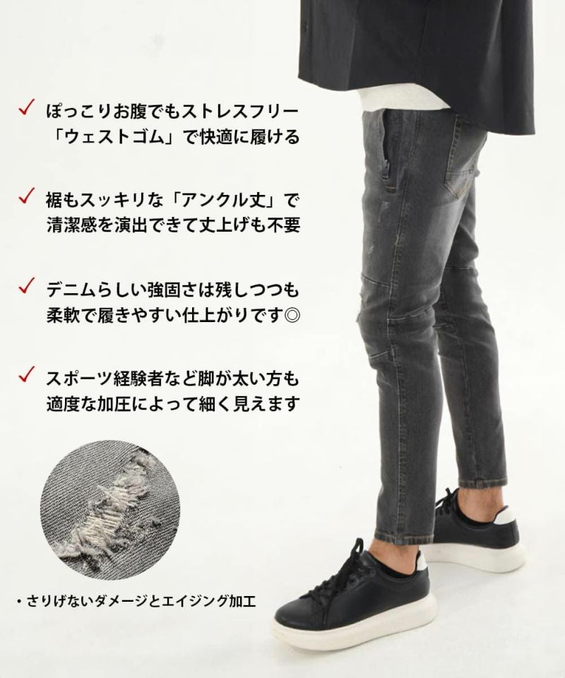 ダメージ加工ストレッチデニムスキニーパンツ(キングサイズ)