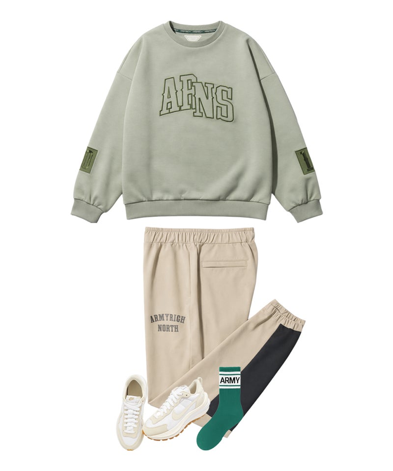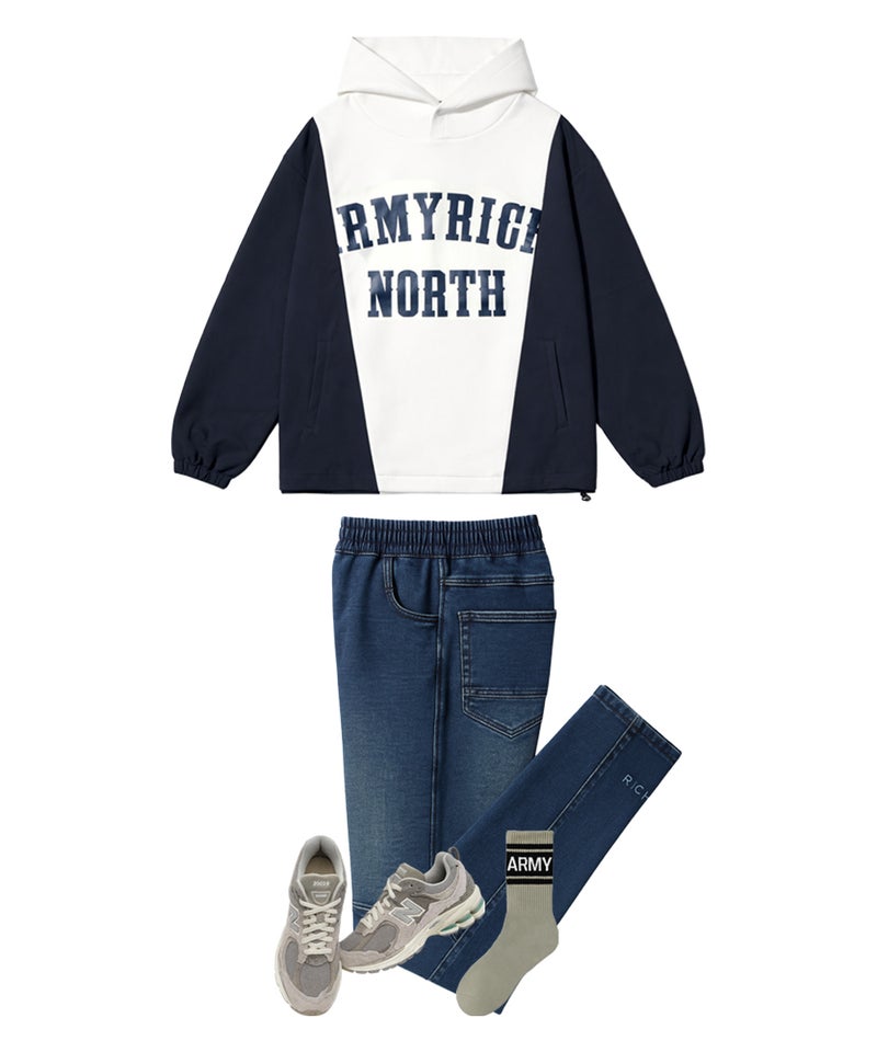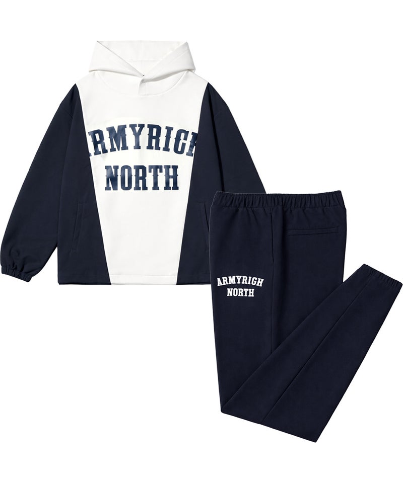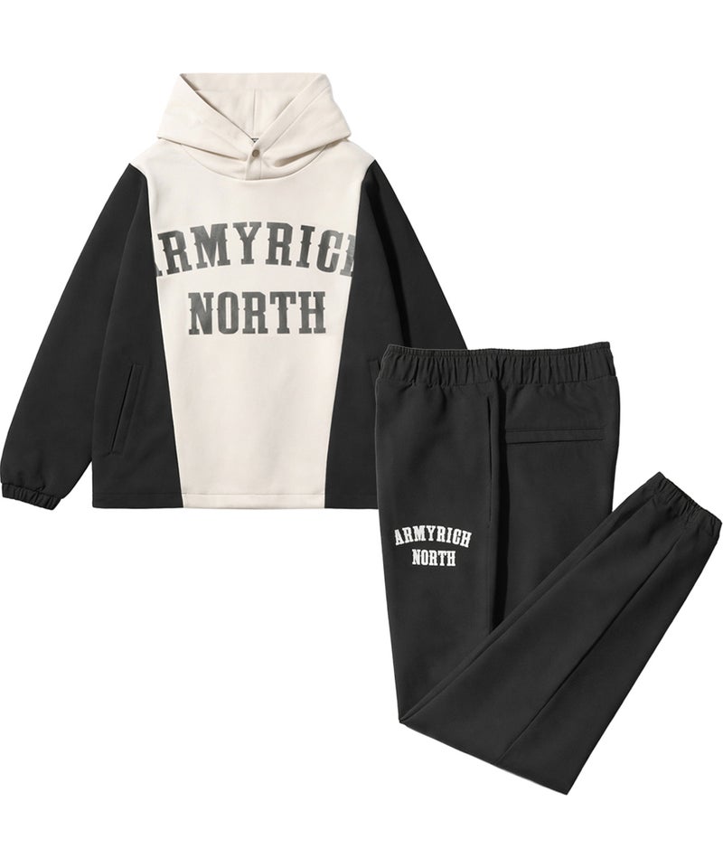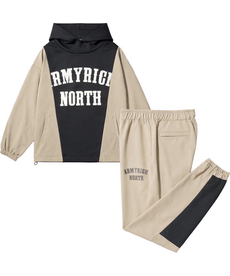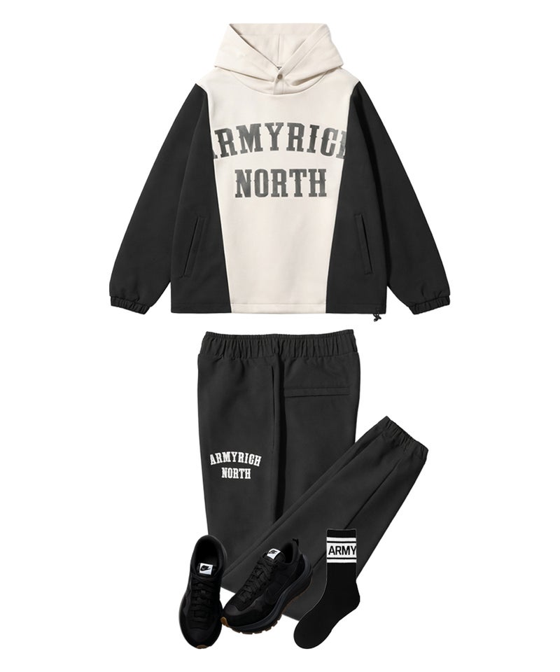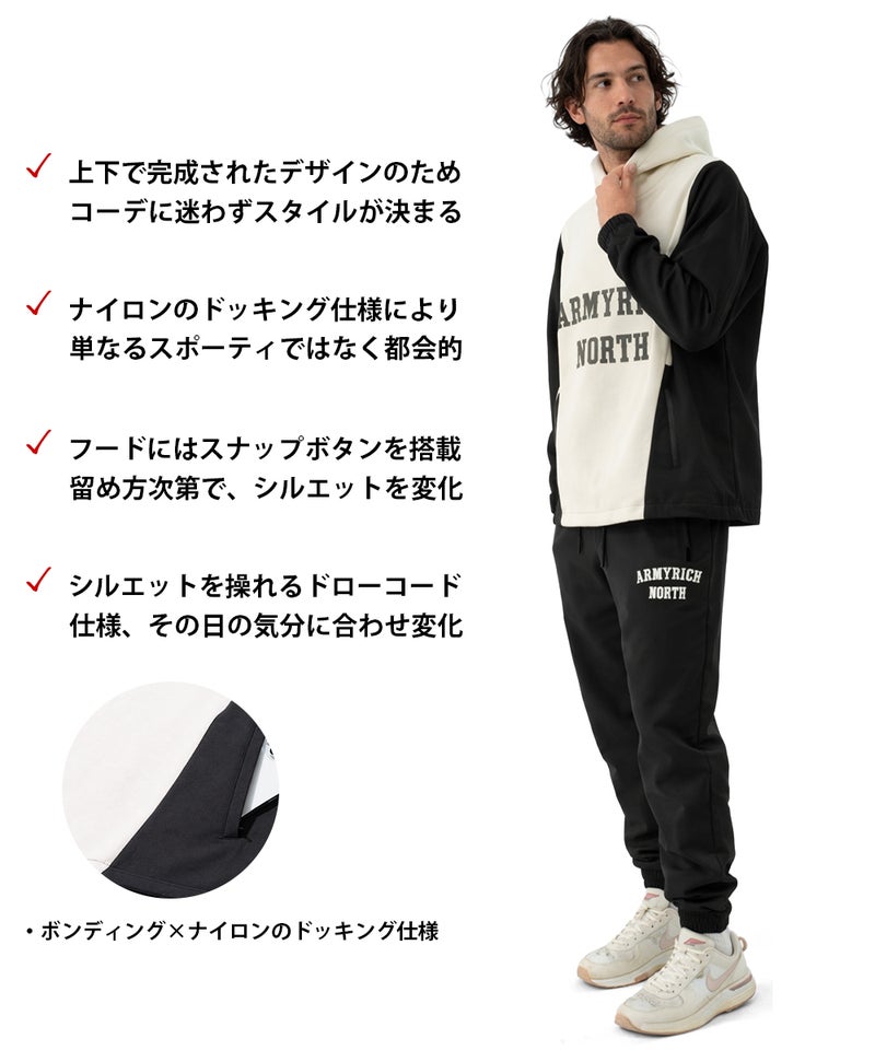 ARMYRICHより、ボンディング×ナイロンのドッキング仕様を採用した都会的スポーティスタイルのドッキングパーカーセットアップが登場。