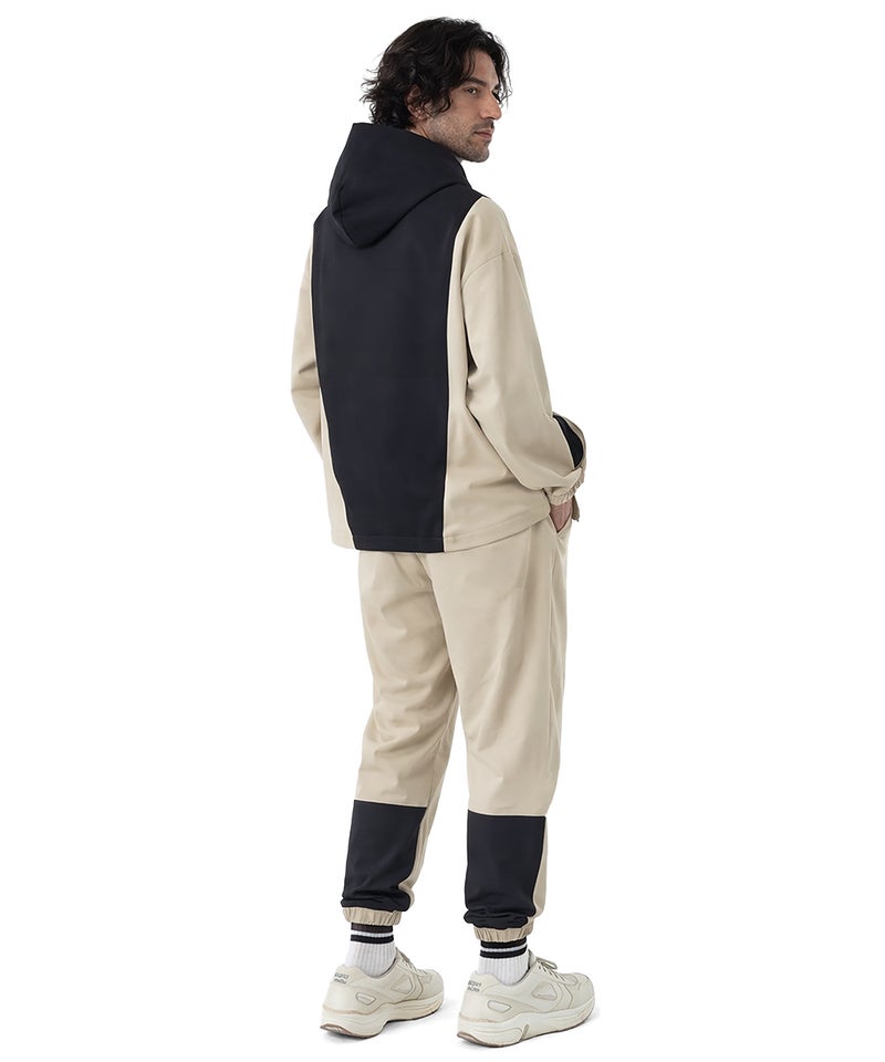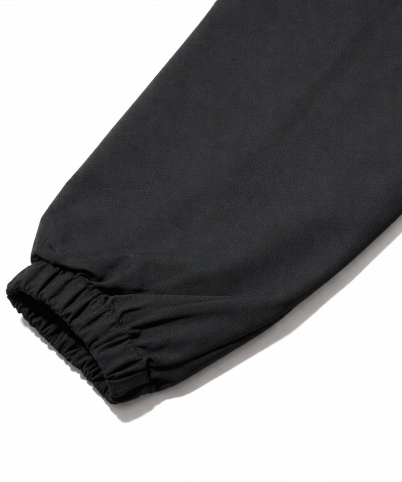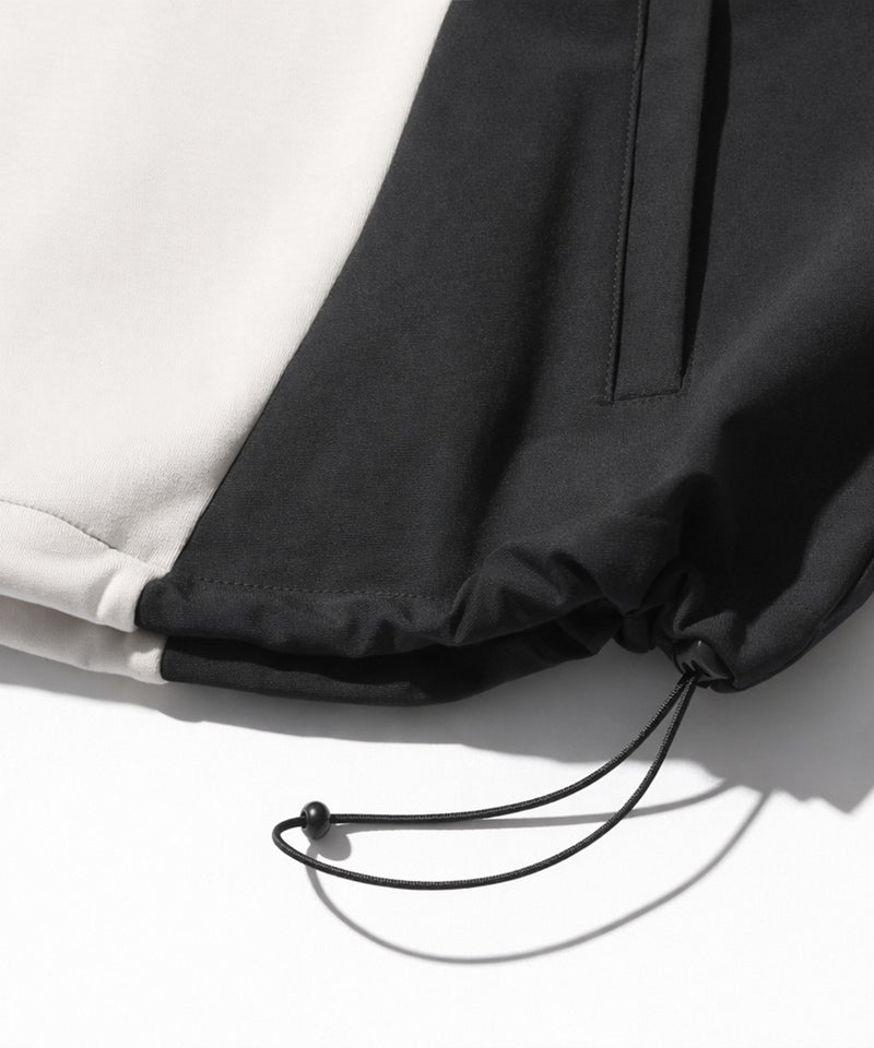 パーカーはボンディング素材をベースにナイロンを切り替えた異素材デザインで、立体感と高級感を演出し、単なるスポーツウェアとは一線を画す洗練された印象に仕上げました。