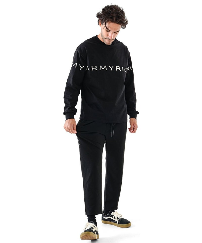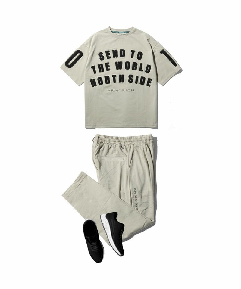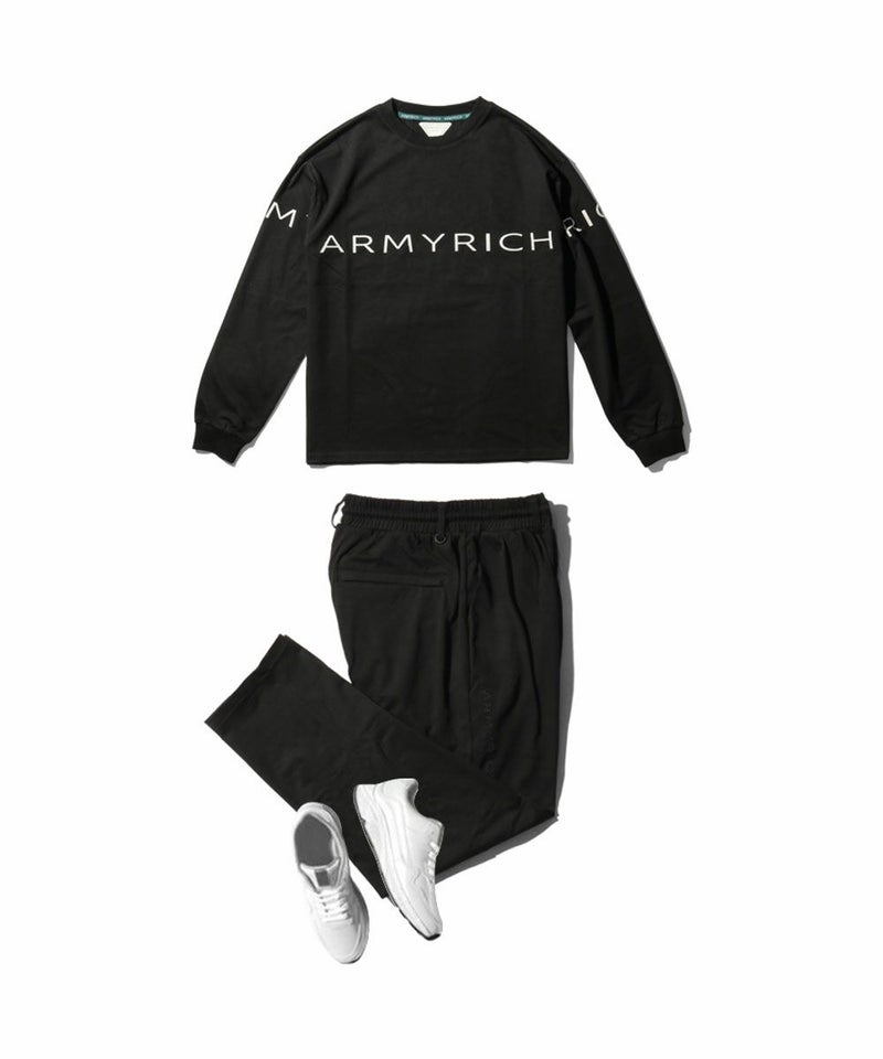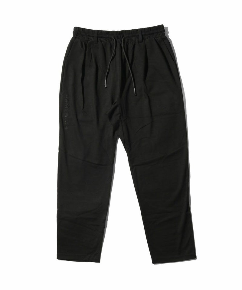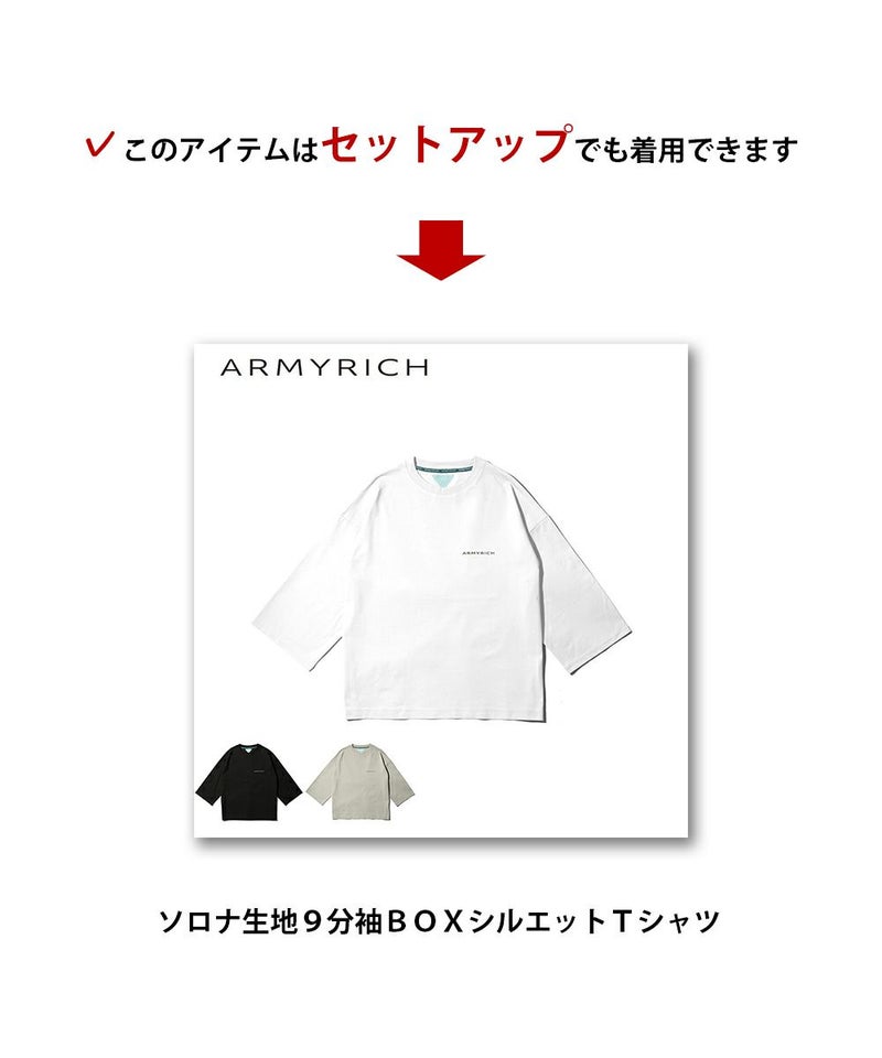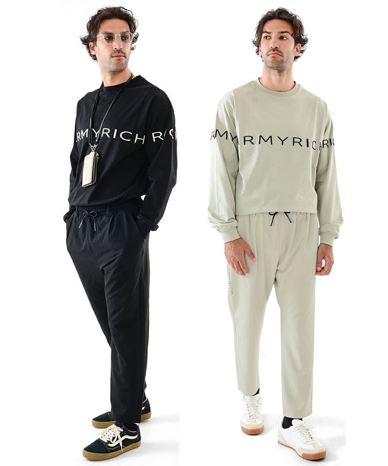 ARMYRICHの「ソロナ生地イージーパンツ」は、スキニー以上ワイド未満の絶妙なバランスで、オンでもオフでも着こなしやすい万能シルエットが魅力。