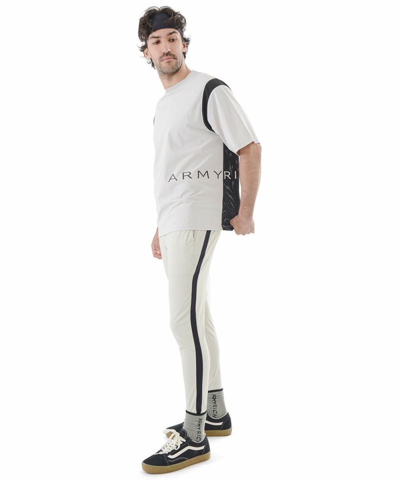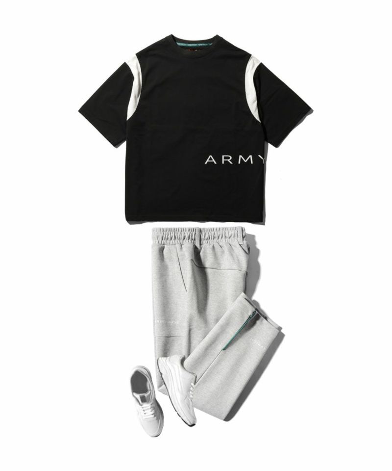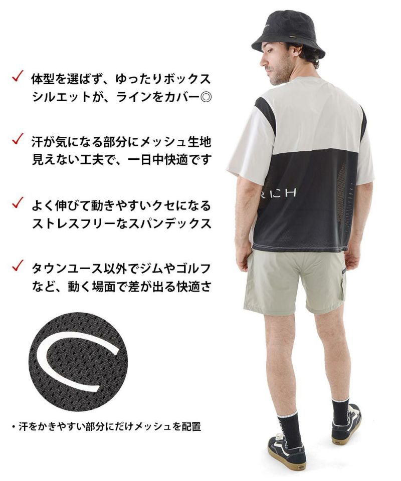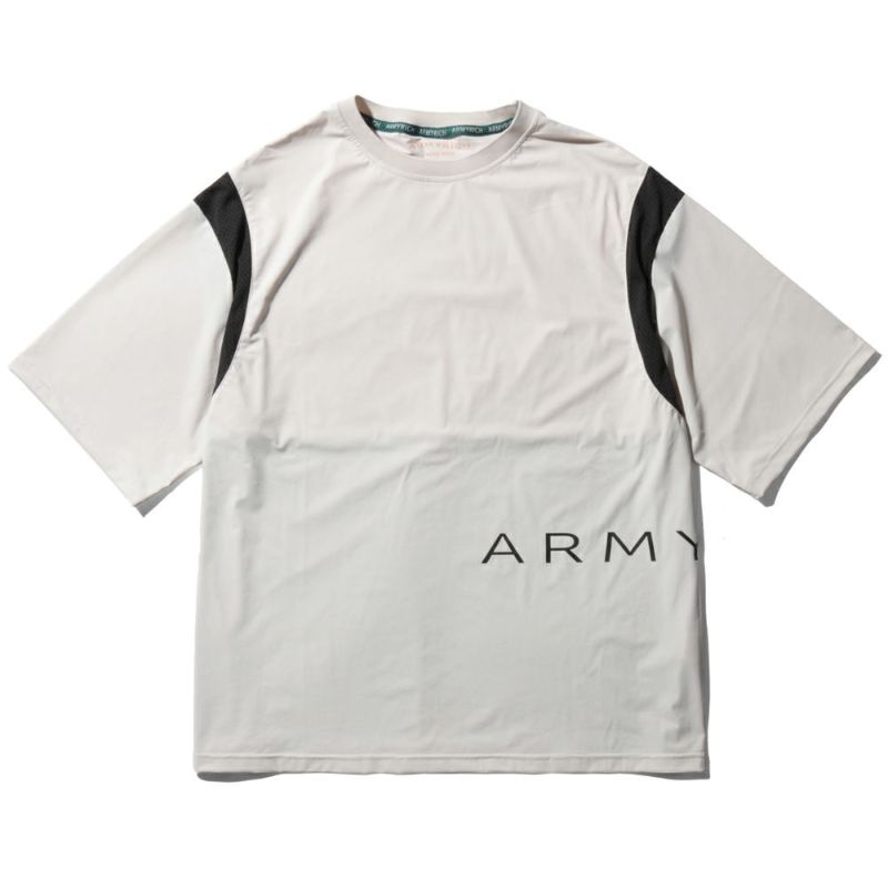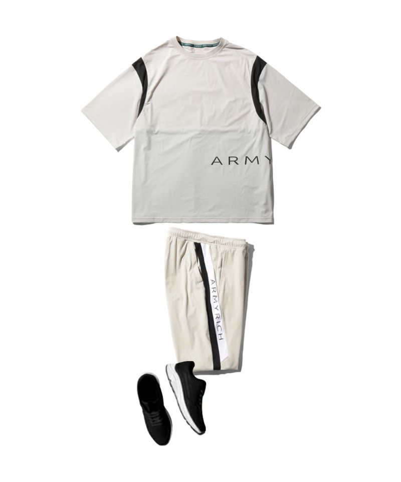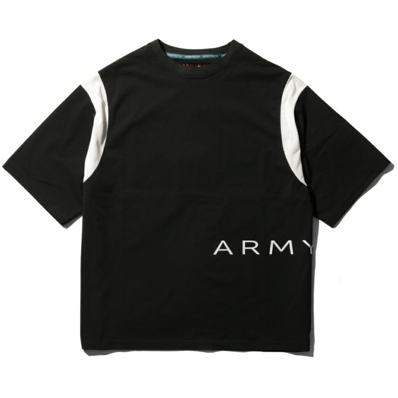 ARMYRICHの「接触冷感スパンデックスメッシュ配色Tシャツ」は、スタイリッシュな配色切り替えと高機能素材を融合させた万能Tシャツ。