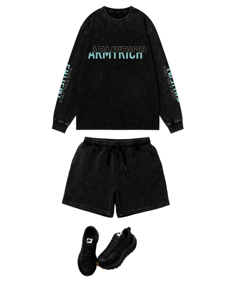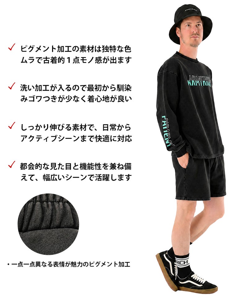 独特な色ムラとヴィンテージ感が魅力の、ピグメント加工ロングTシャツセットアップ。 まるで古着のようなUSED感を楽しめる、存在感のある上下セットです。