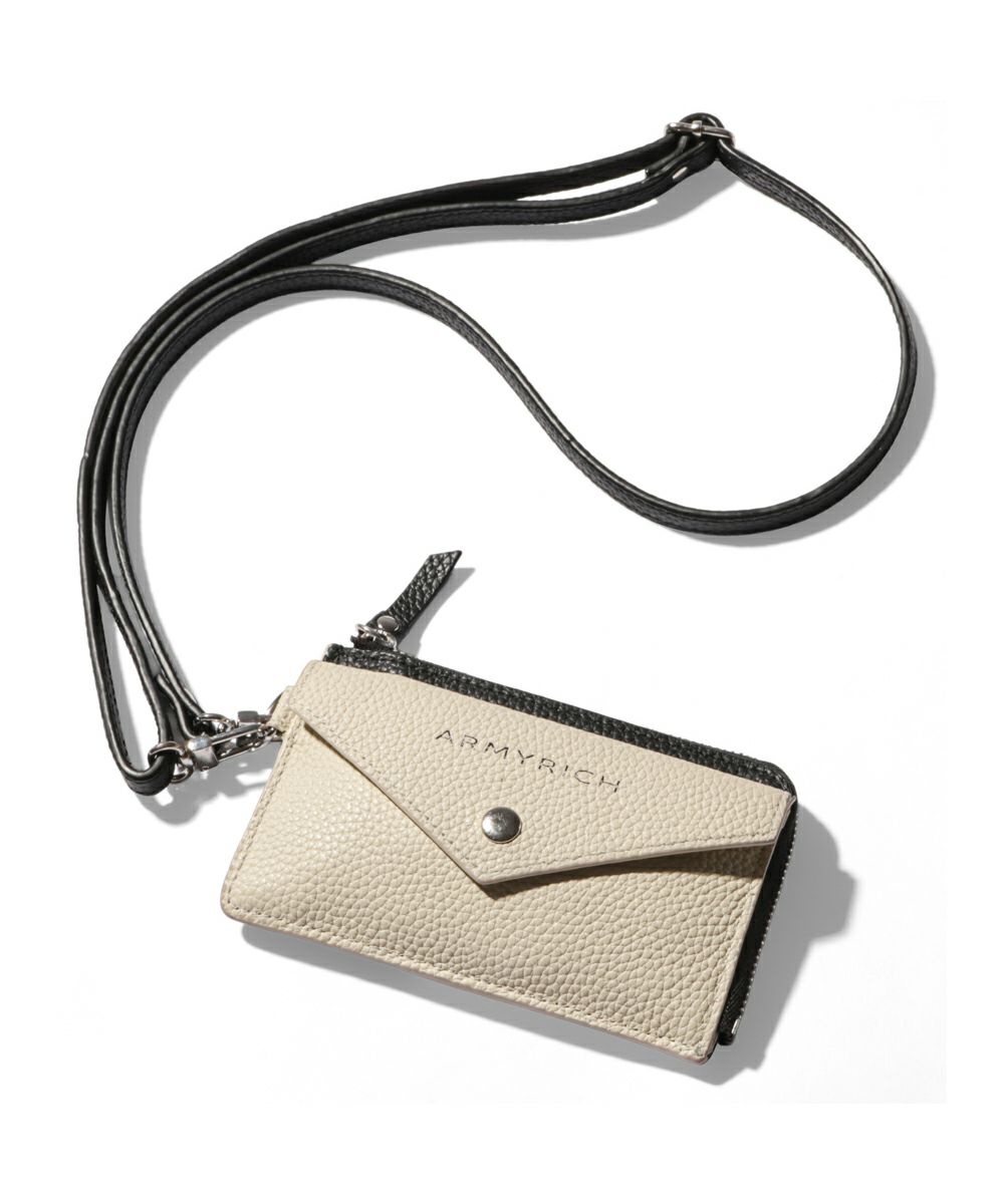 ARMYRICHから登場した「ストラップ付きレザーウォレット」は、財布でありながらアクセサリー感覚で持ち運べる新感覚アイテム。 リアルレザーのような高級感あるシボ加工を施したフェイクレザーを使用し、シンプルながら洗練されたデザインに仕上げました。