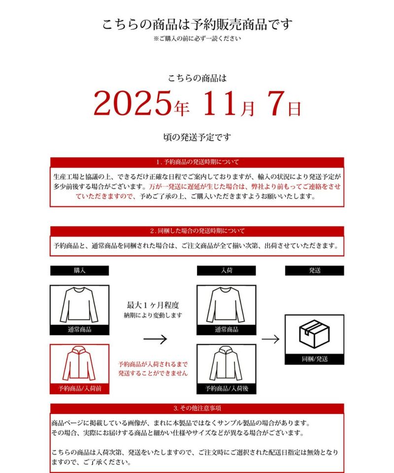 予約商品と通常の商品を同じカゴでご購入された場合、全て商品が揃ってからの発送になります。 (必須)