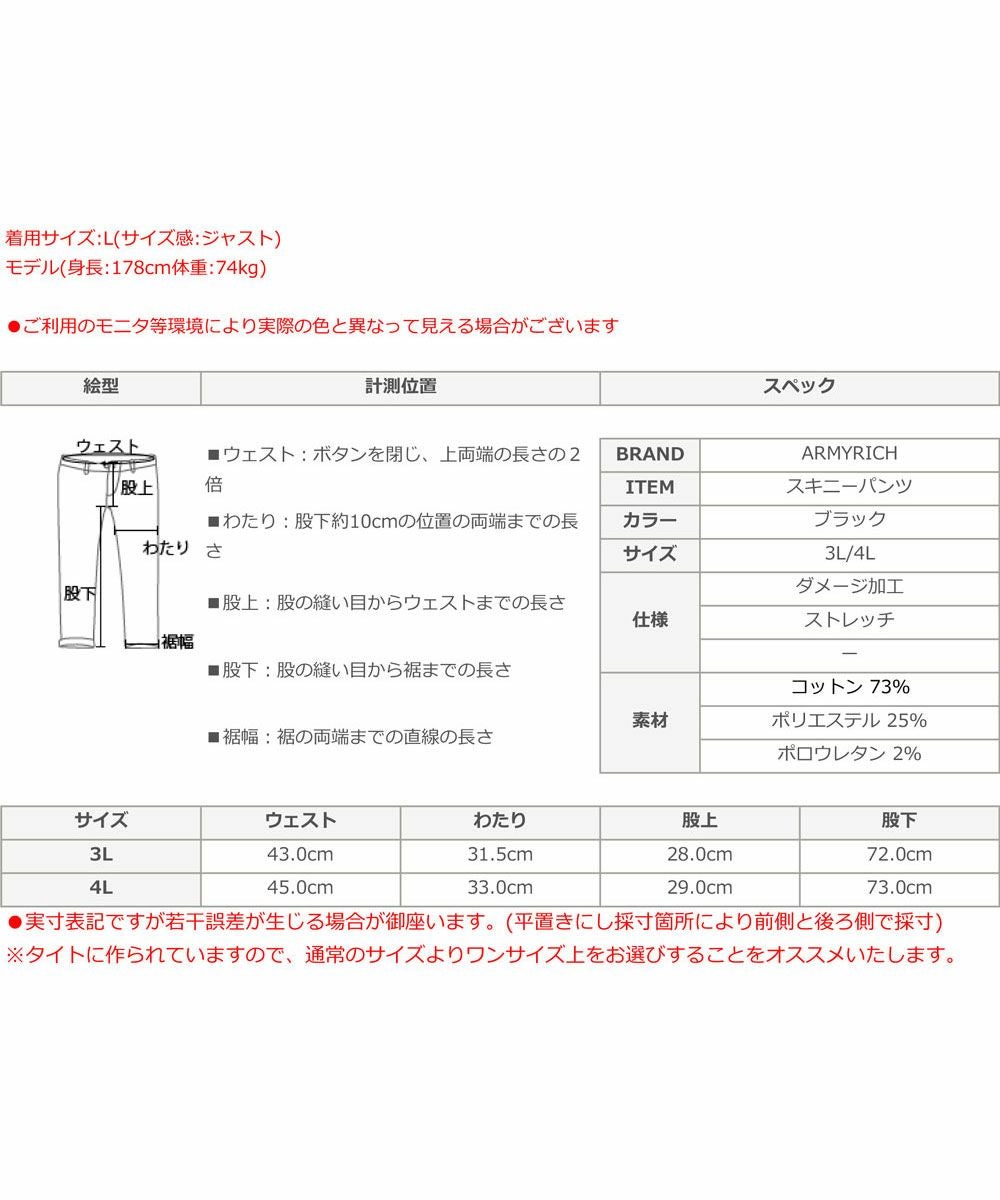 他の画像を見る ARMYRICH/25SS ダメージ加工ストレッチデニムスキニーパンツ(キングサイズ) ARMYRICH 定価 ¥ 14,080 のところ ¥ 14,080 税込 在庫切れ カートに入れる お気に入りに登録する