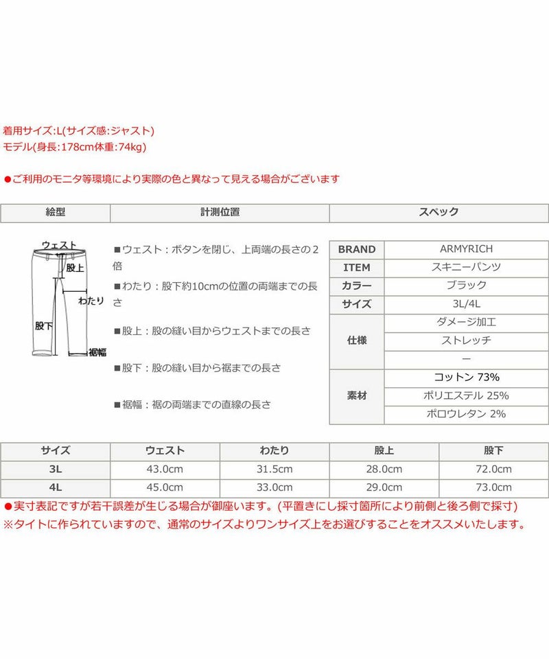 ダメージ加工ストレッチデニムスキニーパンツ(キングサイズ)