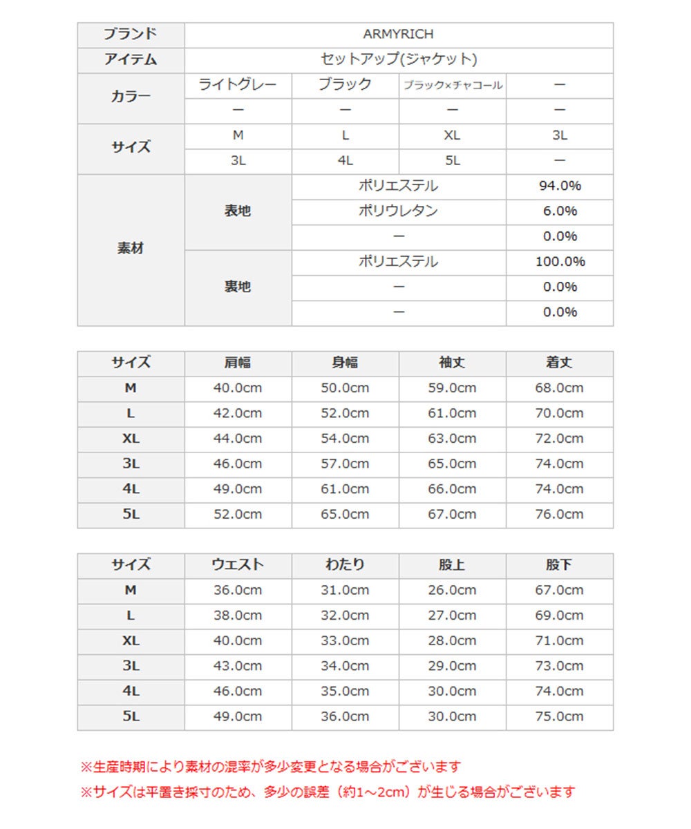 他の画像を見る ARMYRICH /23SS TRストレッチセットアップ(キングサイズ) ARMYRICH KING SIZE 定価 ¥ 20,680 のところ ¥ 15,000 税込 在庫切れ 詳細を見る お気に入りに登録する