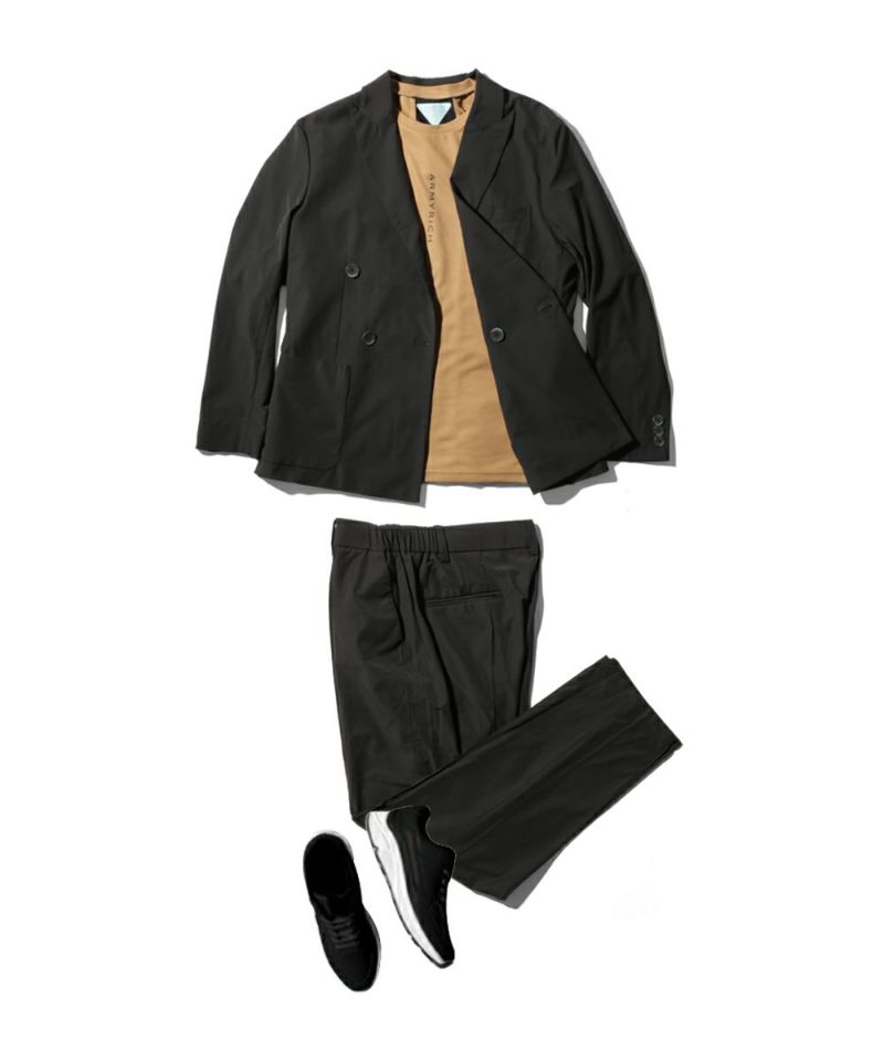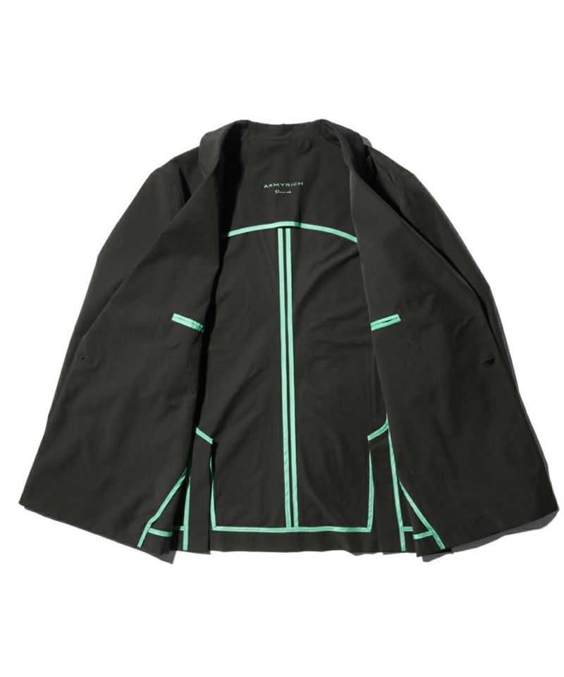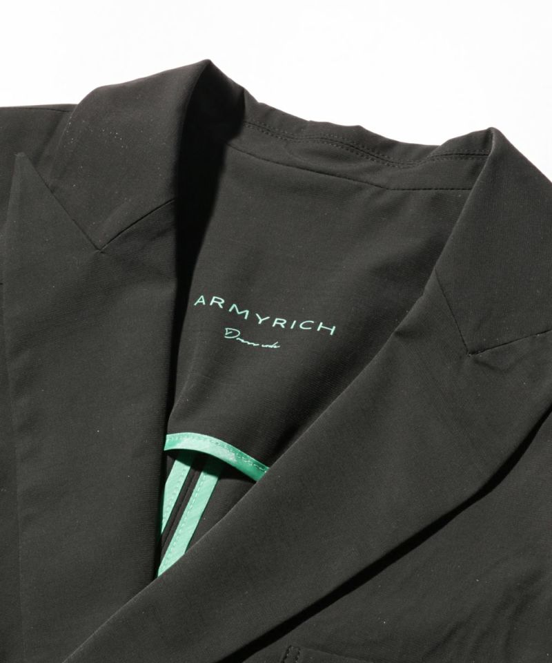 きちんと感と快適さを両立した、ARMYRICHの新作セットアップ。 軽量で通気性に優れたナイロン素材を使用し、伸縮性も高くストレスフリーな着心地を実現しました。ダブルブレスト特有のボタン配列が、重厚感とエレガンスを演出。