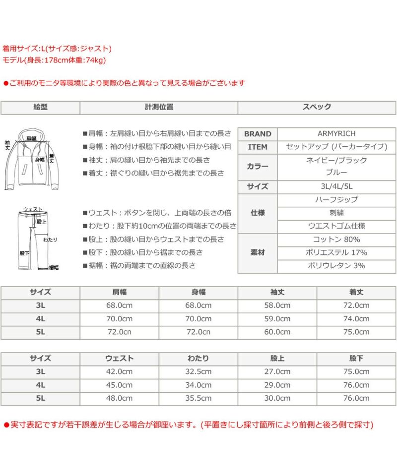 鹿の子ハーフジッププルパーカーセットアップ(キングサイズ)