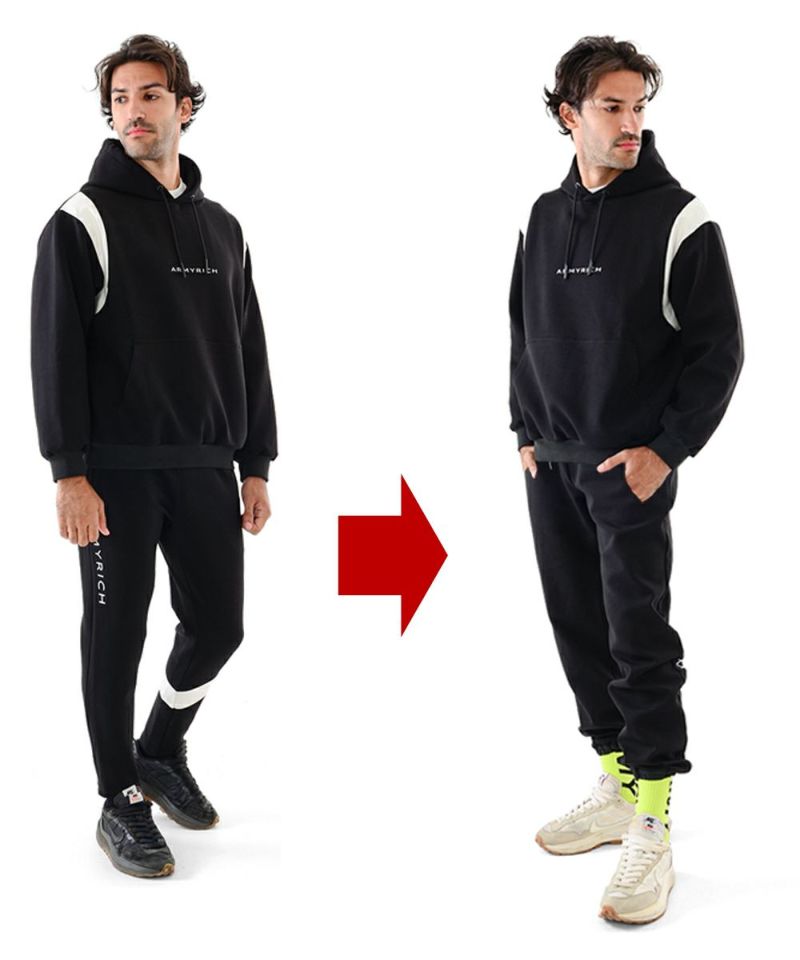 上下セットアップ仕様なので、コーディネートに悩まず着用でき、タウンユースからゴルフやトレーニングなどアクティブなシーンまで幅広く対応。 また、別売りのジョガーパンツと組み合わせれば、気分に合わせてシルエットを変えて楽しむこともできます。 都会的な印象と快適さを両立した、ARMYRICHらしい洗練された1着です。