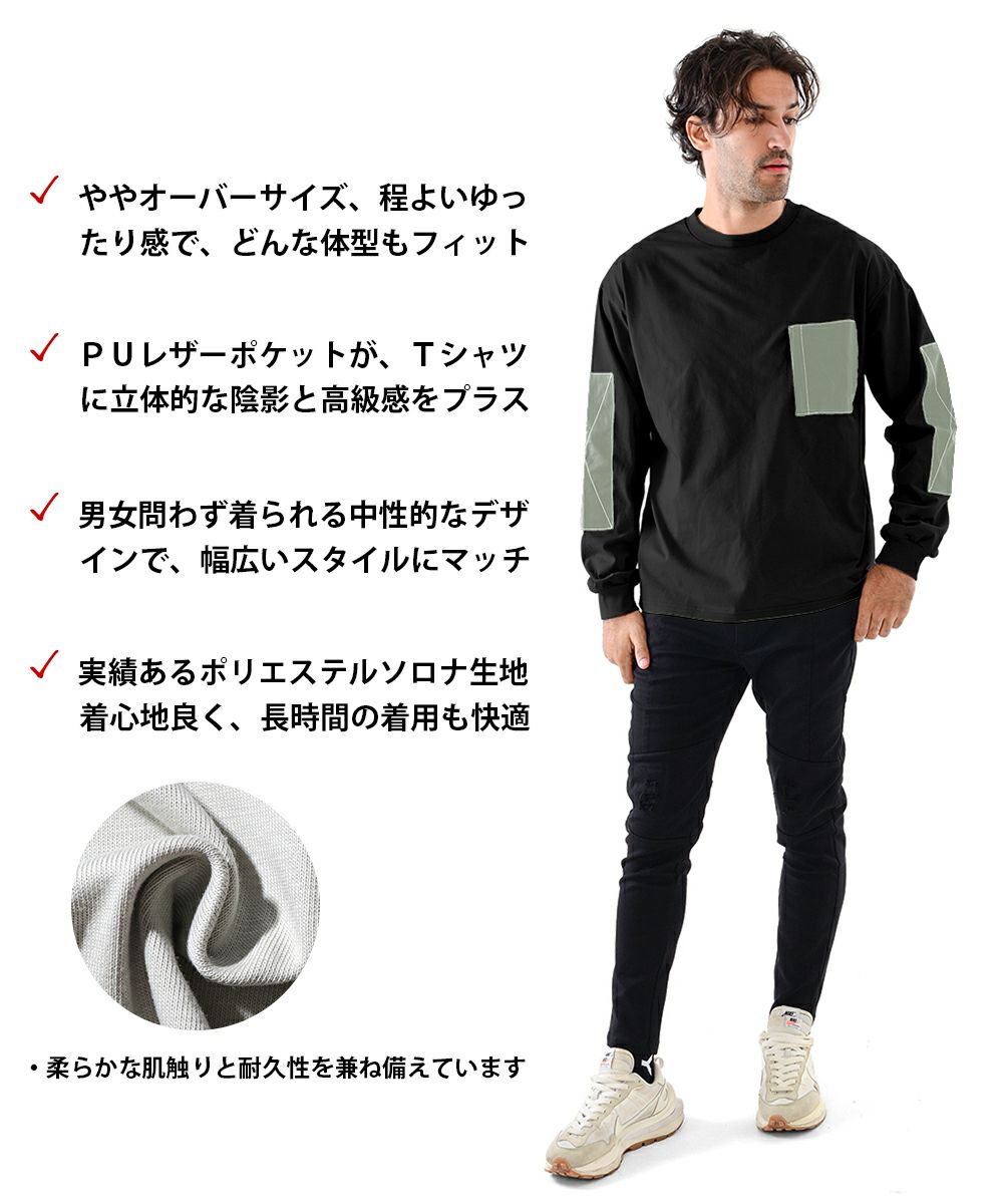 レザーポケットロングTシャツ