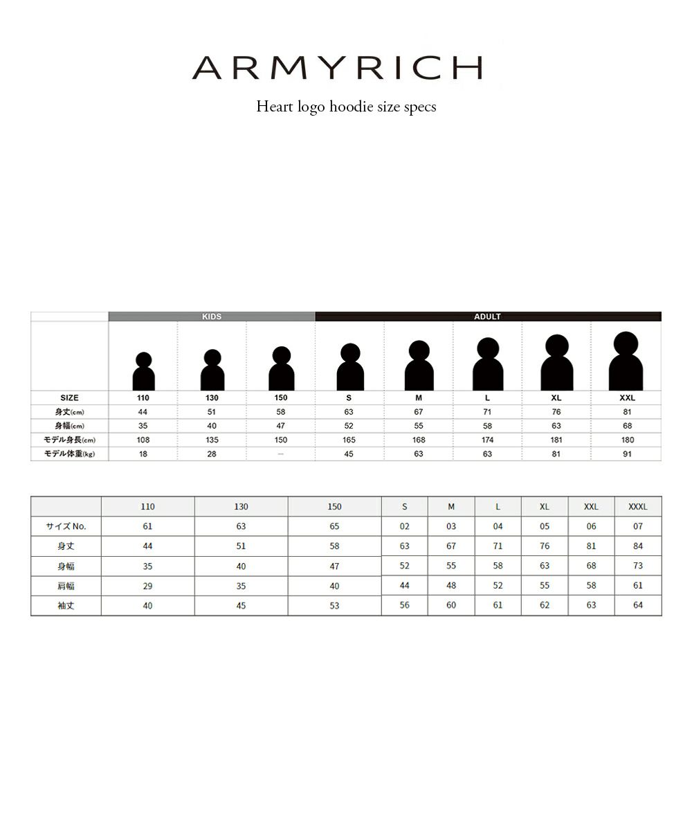 他の画像を見る ARMYRICH/24SS 【完全受注生産】ハートロゴフーディ(110,130,150) ARMYRICH 定価 ¥ 7,590 のところ ¥ 7,590 税込 在庫切れ 詳細を見る お気に入りに登録する