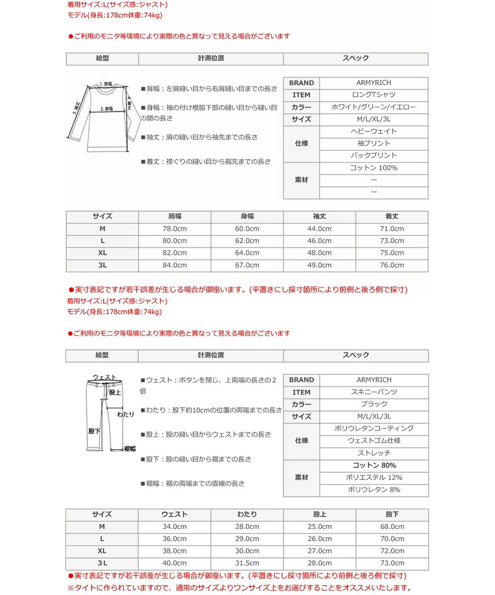 他の画像を見る ARMYRICH/24SS コーディネートセット(ビッグシルエット8分袖ドルマンTシャツ/アースカラースキニーパンツ) ARMYRICH 定価 ¥ 19,580 のところ ¥ 15,000 税込 在庫切れ 詳細を見る お気に入りに登録する