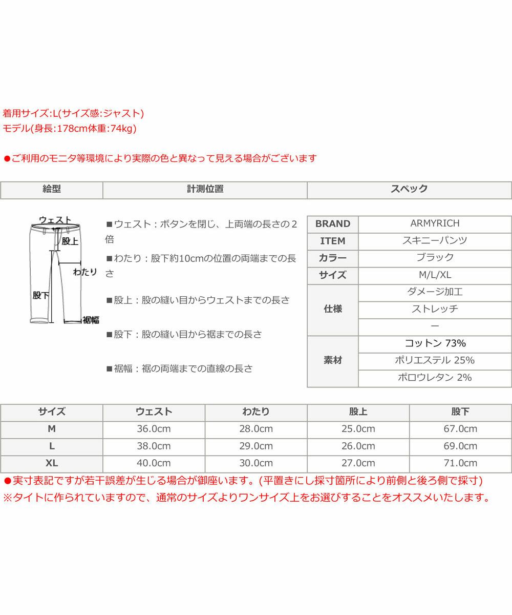 他の画像を見る ARMYRICH / 24SS ダメージ加工ストレッチデニムスキニーパンツ ARMYRICH 定価 ¥ 11,880 のところ ¥ 8,820 税込 在庫切れ 詳細を見る お気に入りに登録する